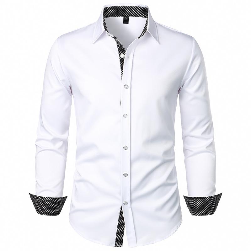 Amazon nueva camisa casual de manga larga para hombre con combinación de colores de puntos A323