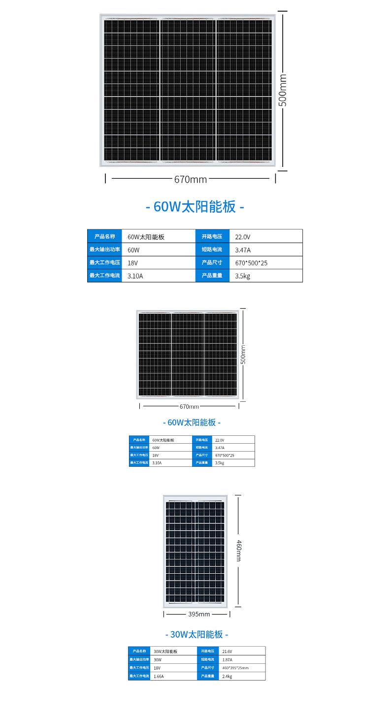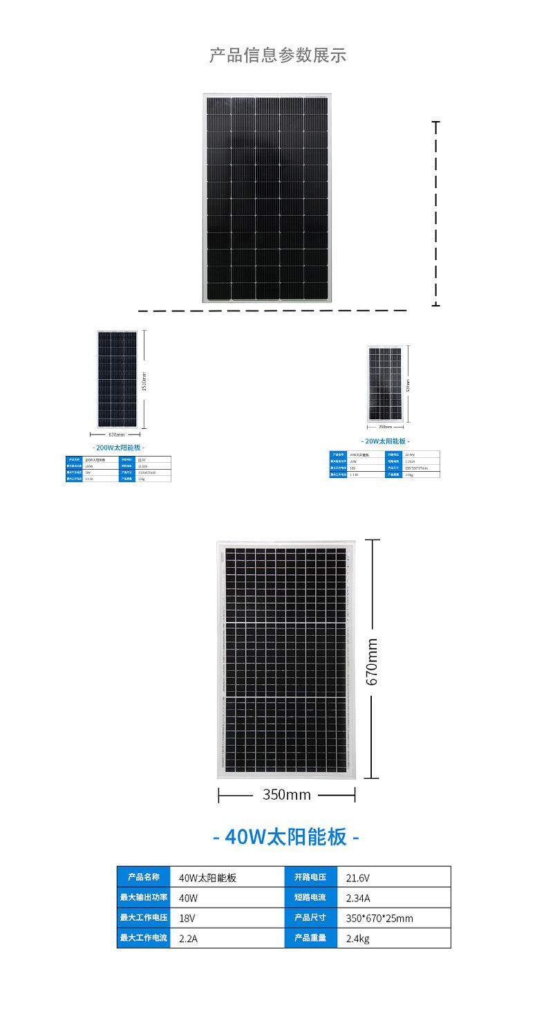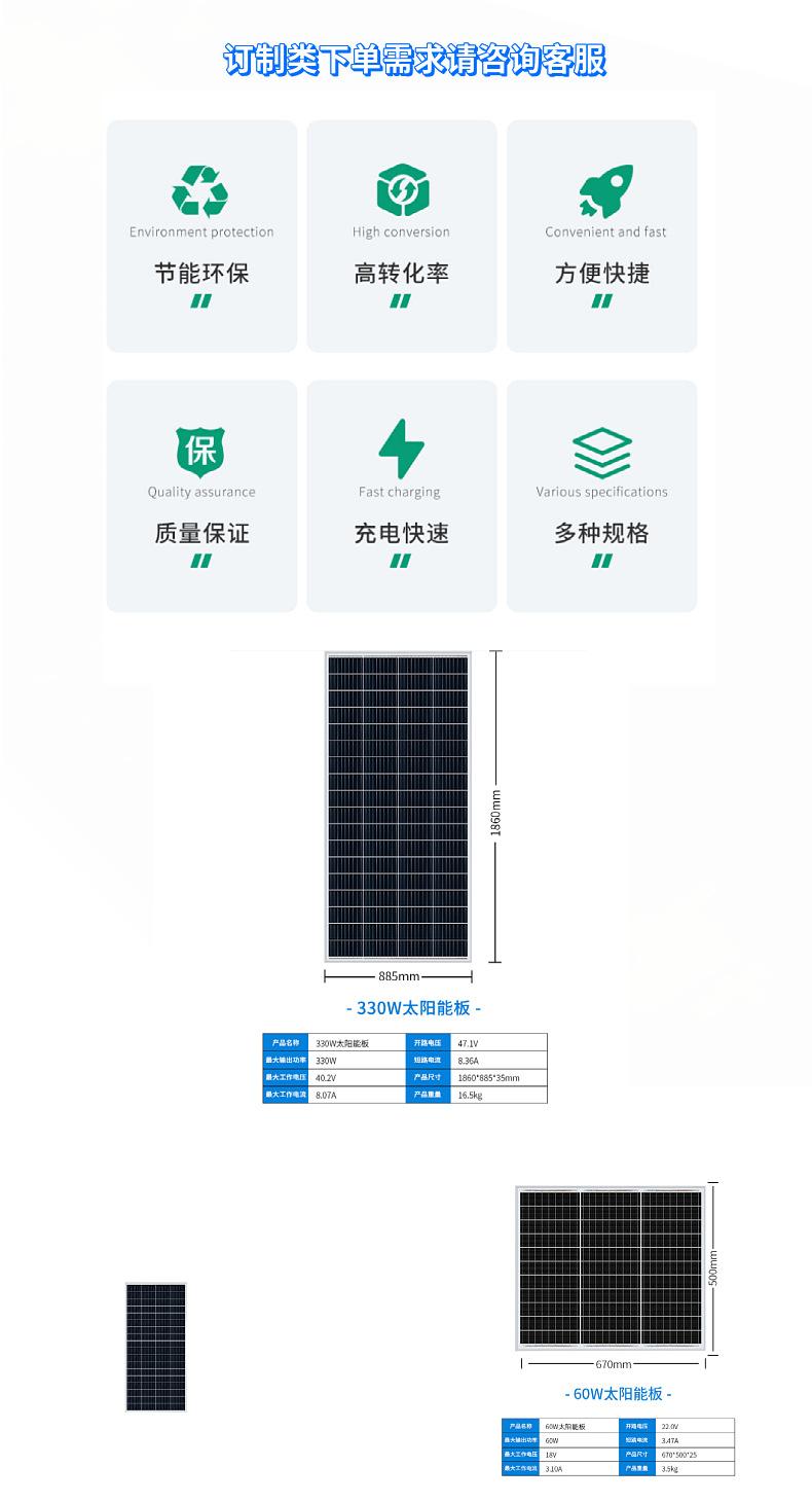 Módulo de Vidrio Solar de 20W a 350W Panel Solar Fotovoltaico Silicio Monocristalino Panel Solar Sunpower