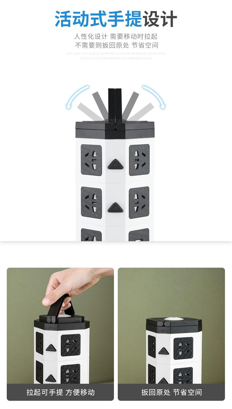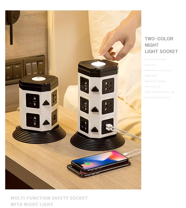 Panel de Enchufe Vertical Tridimensional Multifuncional Hard Leopard para Oficina en Casa con Enchufe Convertidor USB con Cable