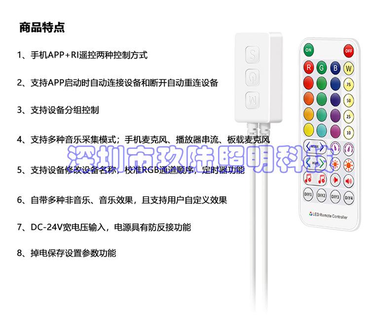 Luces RGB coloridas con Bluetooth 5 a 24VSP613E controlador de música control grupal control remoto por APP de teléfono móvil