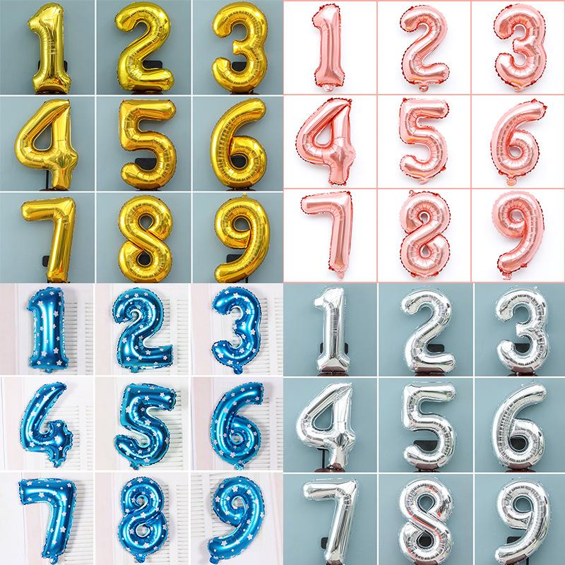 Globo digital de aluminio dorado y plateado de 16 pulgadas para fiesta de cumpleaños, accesorios de fotografía, decoración, globo del 0 al 9, papel de aluminio