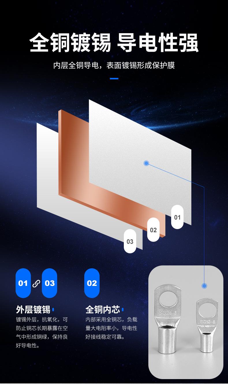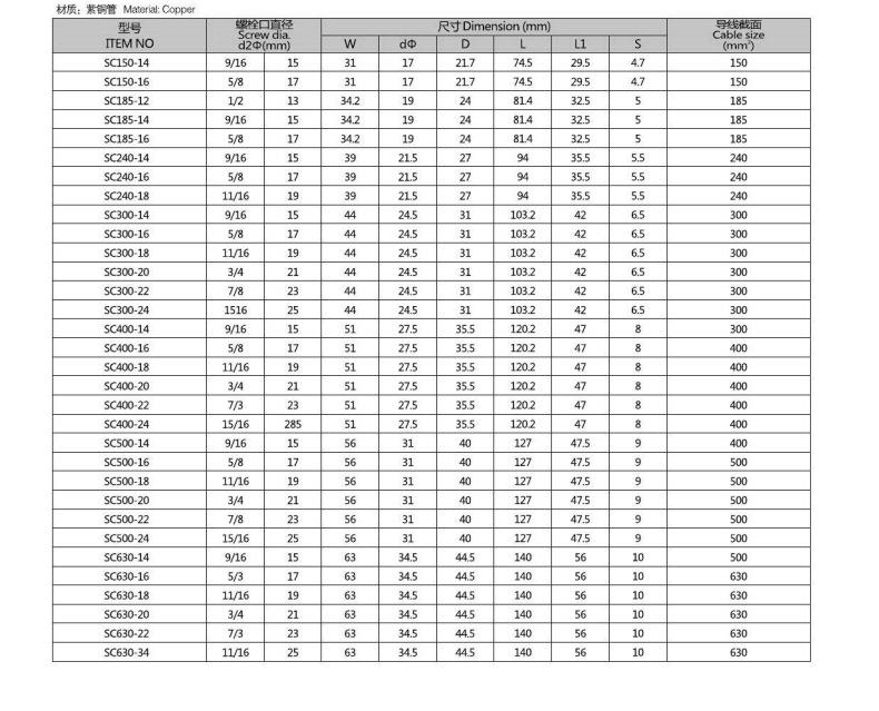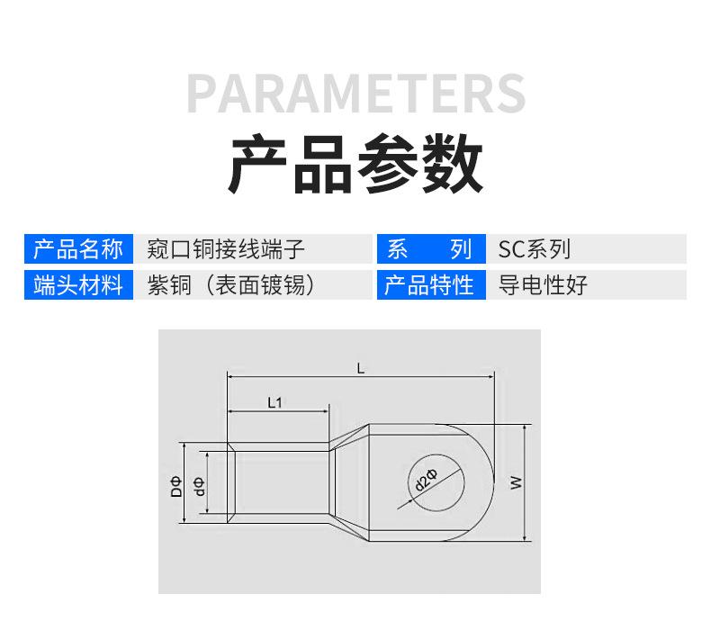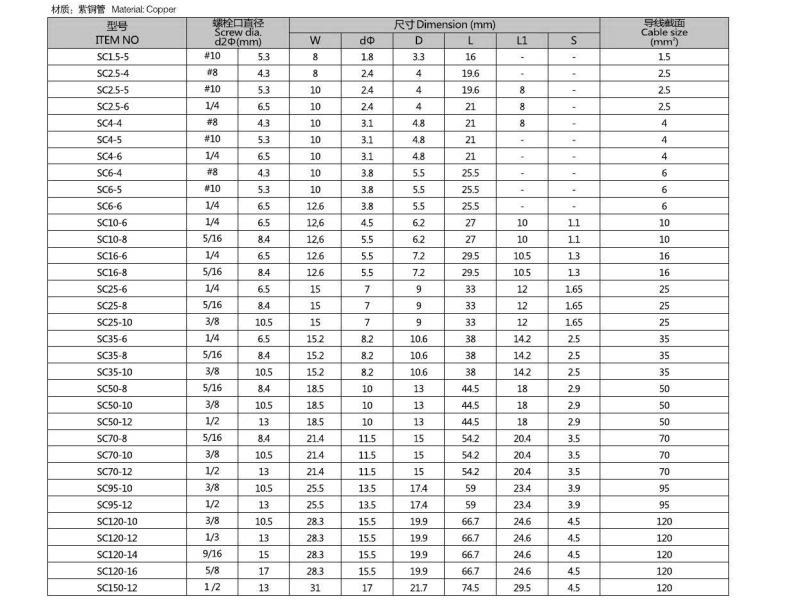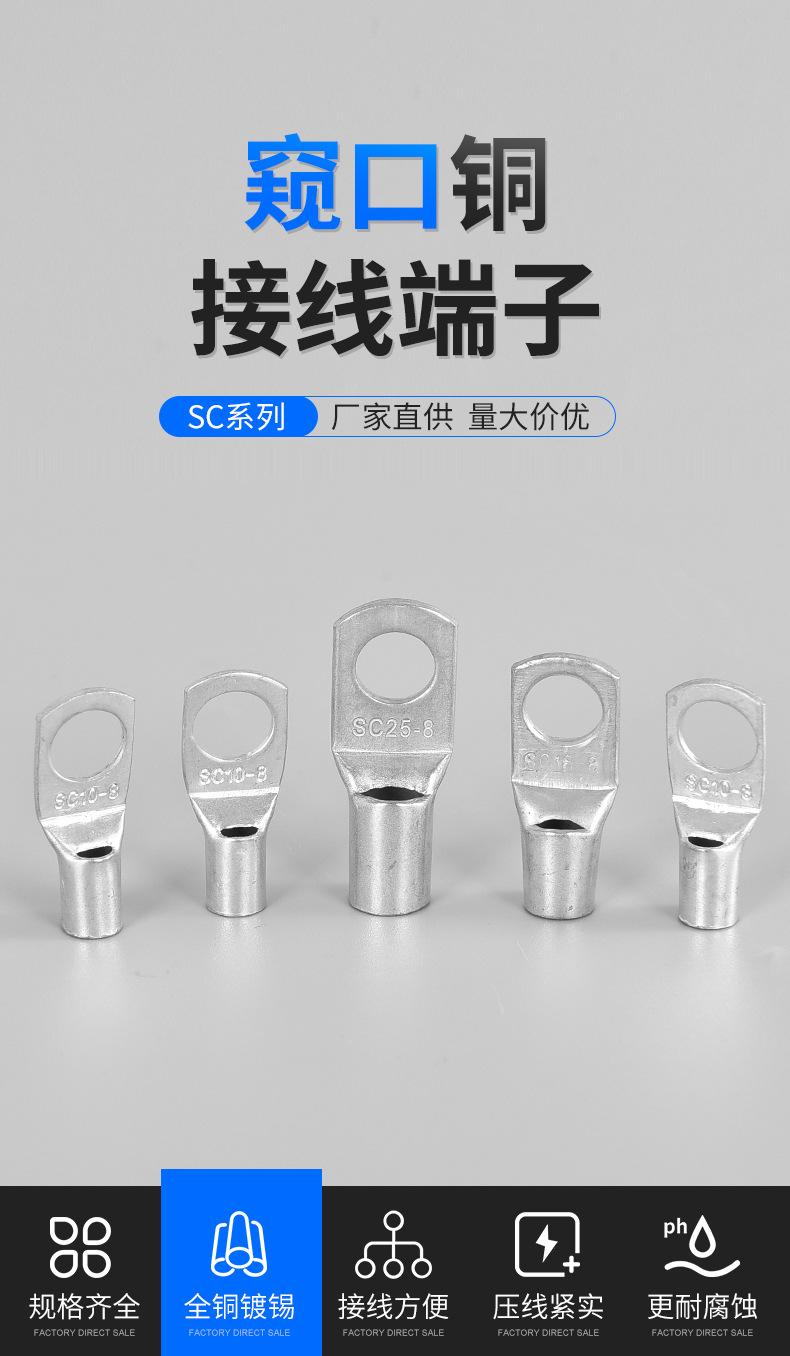 Terminal de cableado de cobre SC con punta de cobre y oreja de alambre, terminal de tubo de cobre para cable de punta de oreja