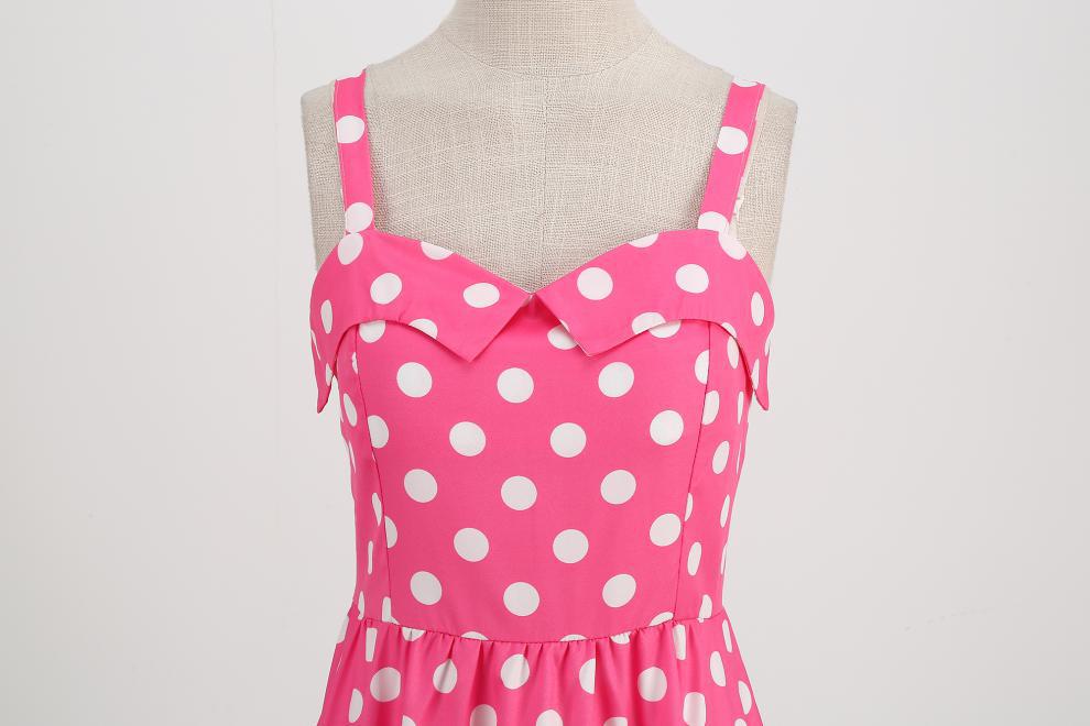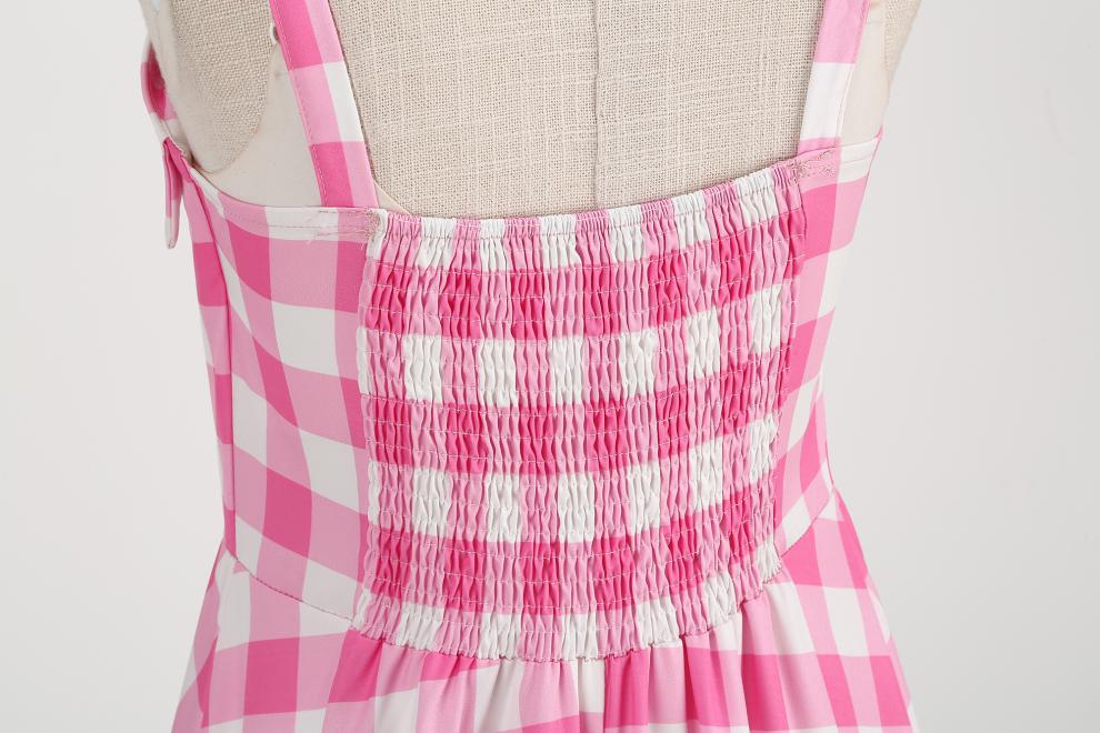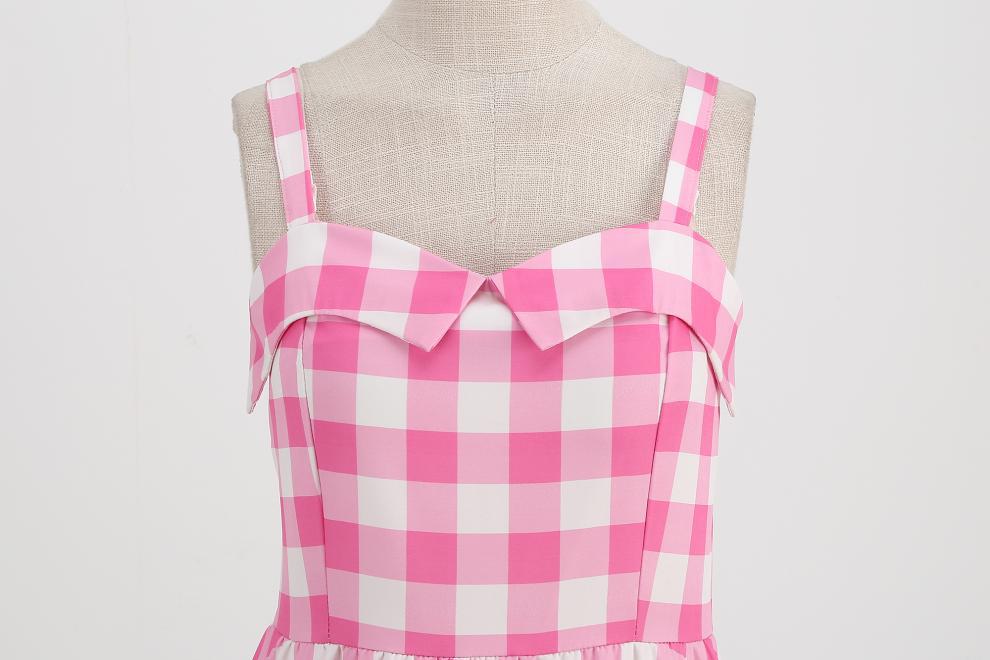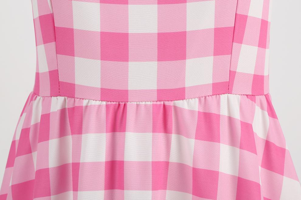 Vestido Barbie con estampado de lunares y cuadros rosas, disponible en Amazon Cross-border, disponible en 2023.