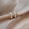 Aretes estilo Chanel de lujo ligero con perlas francesas, aretes modernos de alta gama, elegantes y exquisitos, clip para la oreja tipo espiral de mosquito para orejas no perforadas