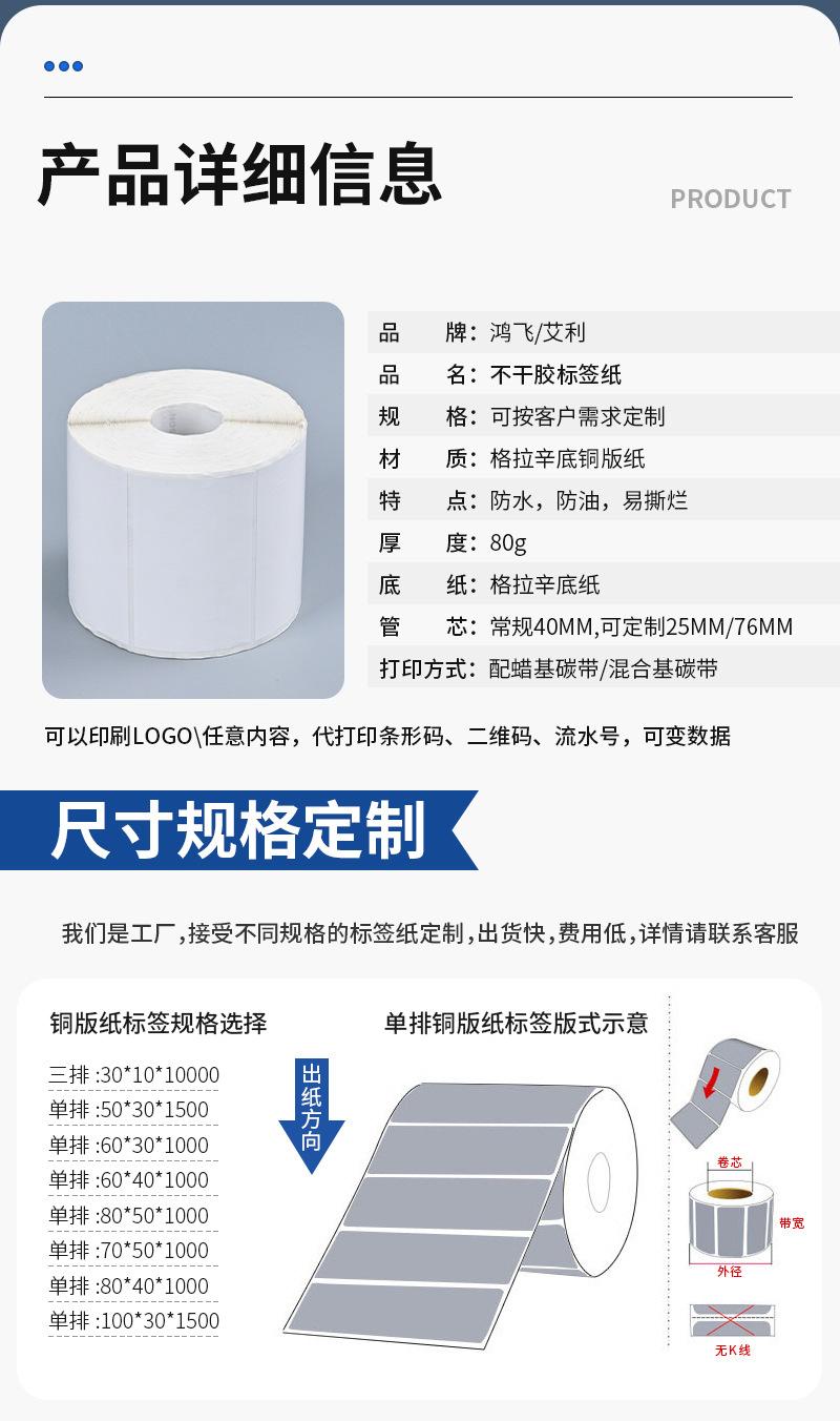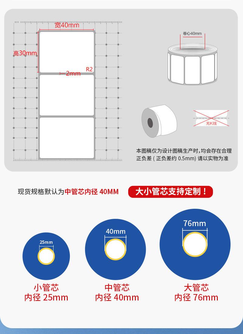 Adhesive printing customization, Coated paper 70MM * 40MM * 1000 sheets/roll, Coated paper 80MM * 50MM * 1000 ...