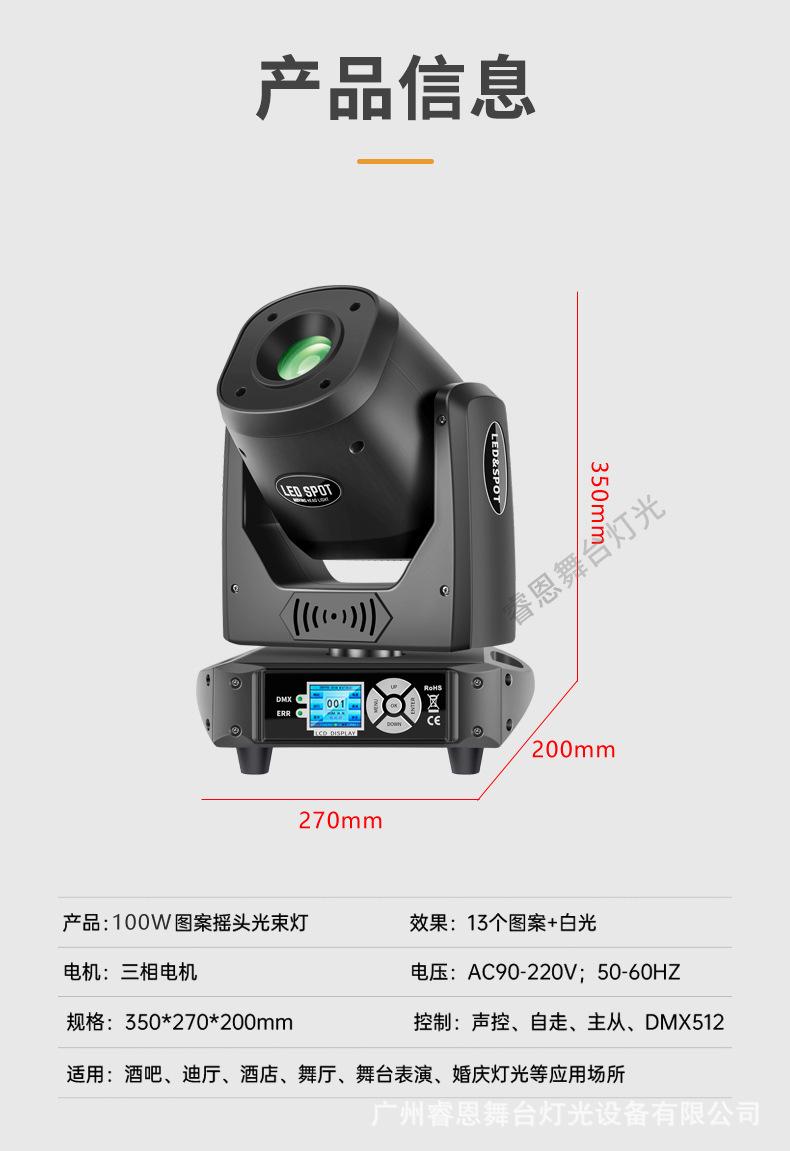 Luz LED de 100 W con cabezal móvil, iluminación de escenario, barra de luz transparente, pequeña pistola de acero, luz giratoria con patrón KTV