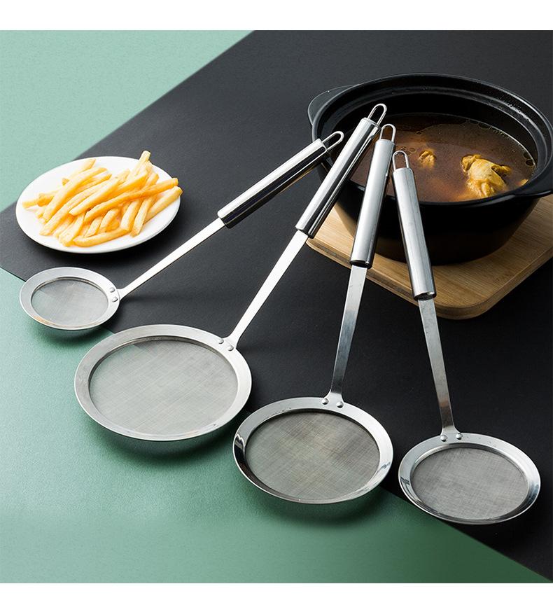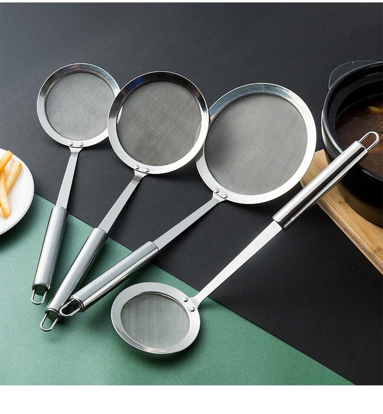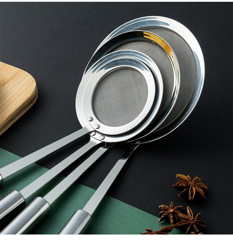 Colador de malla de acero inoxidable 304 con mango redondo, filtro de borde estrecho y ancho para el hogar, tamiz de malla ultrafina, colador de cocina, leche de soja y té.