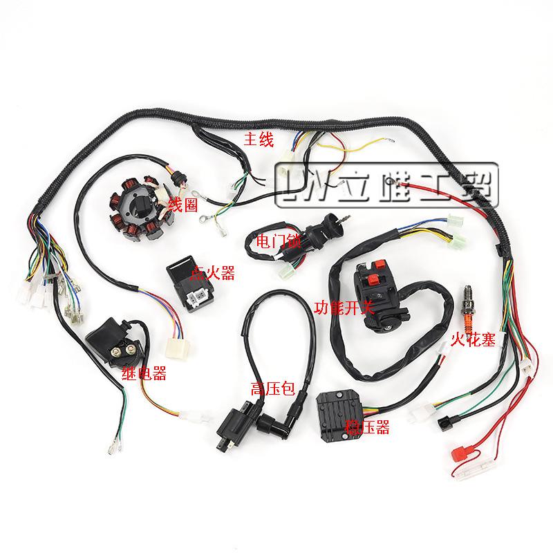 Tipos adecuados: CG125, 150, 250 cableado completo del vehículo, componentes eléctricos, interruptor de encendido, conjunto de cerradura de encendido, superventas para comercio exterior.