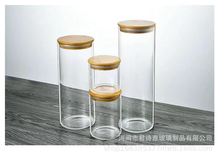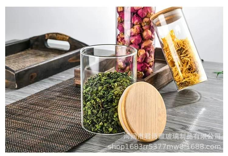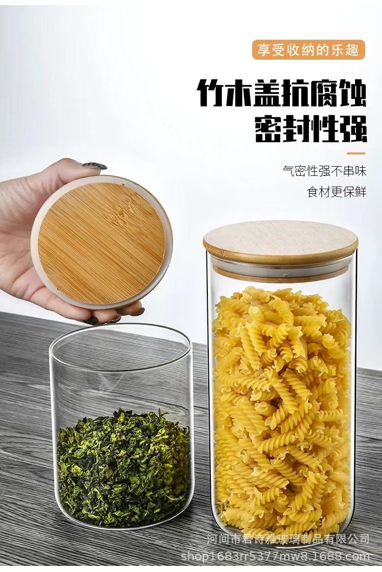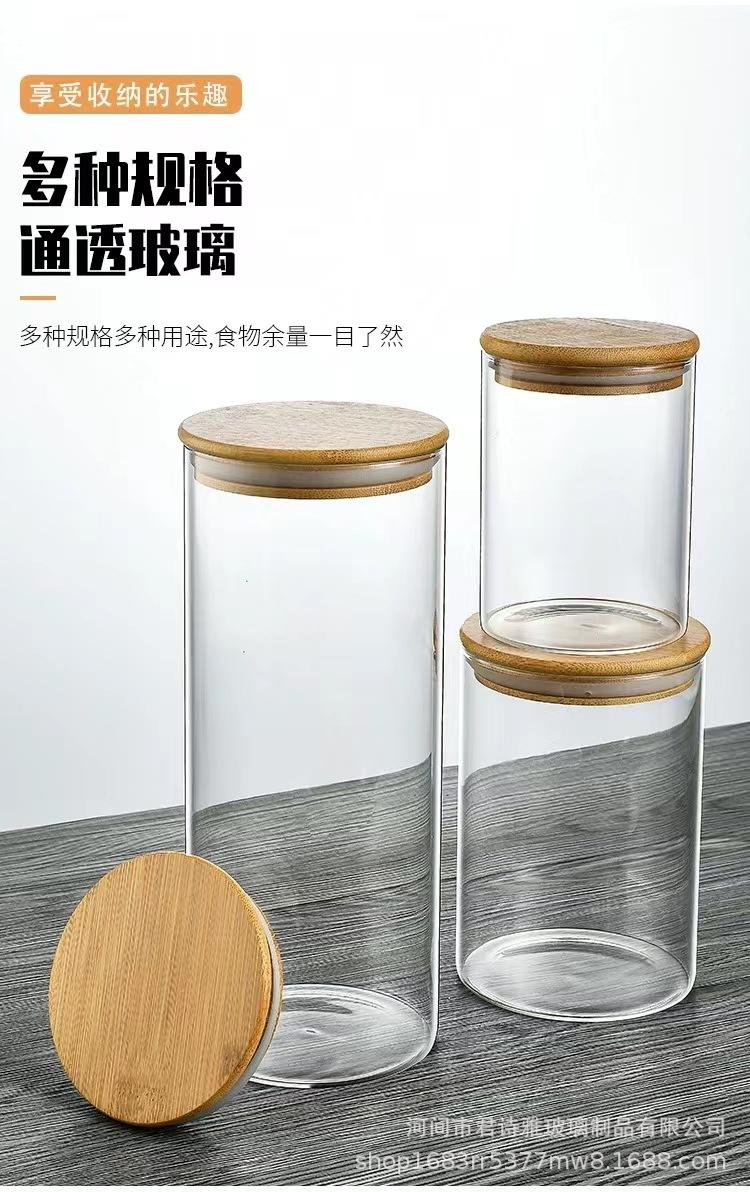Compra Suministro directo de fábrica: frasco sellado de vidrio de borosilicato de alta calidad, frasco de almacenamiento sellado para cocina, frasco de té, frasco de almacenamiento de vidrio con tapa de madera. al por mayor en Joom.pro
