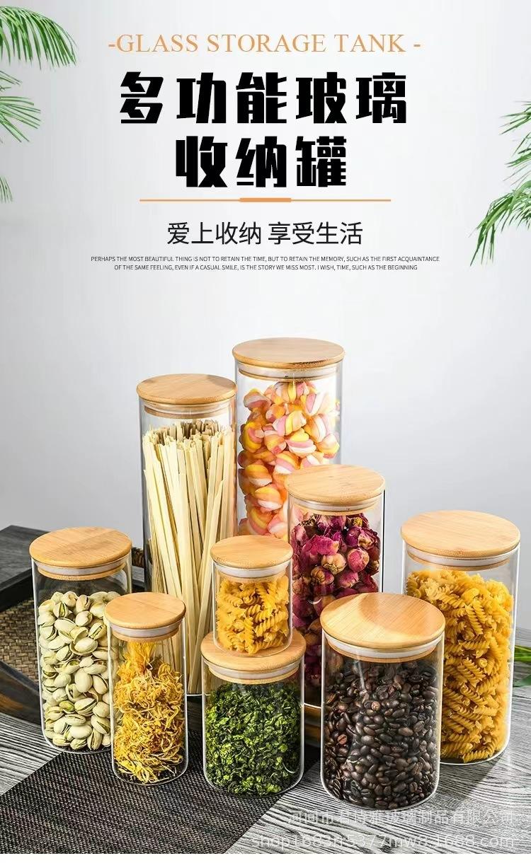 Suministro directo de fábrica: frasco sellado de vidrio de borosilicato de alta calidad, frasco de almacenamiento sellado para cocina, frasco de té, frasco de almacenamiento de vidrio con tapa de madera.