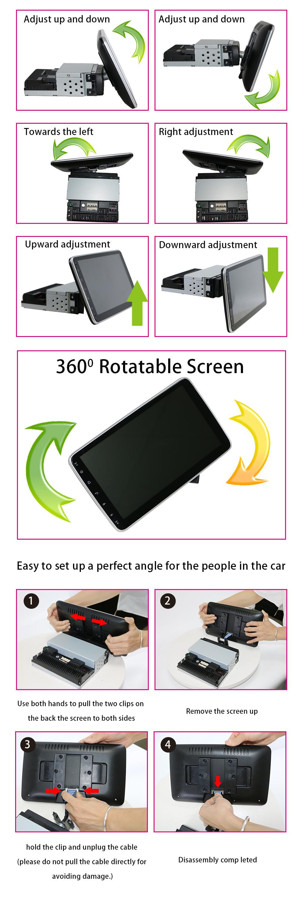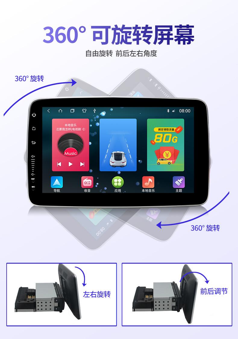 Pantalla de Navegación Android 1Din2Din de 9 Pulgadas 10 Pulgadas Transfronteriza Radio de Coche Giratoria 360 Grados Navegación GPS