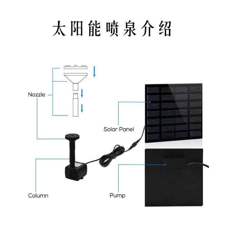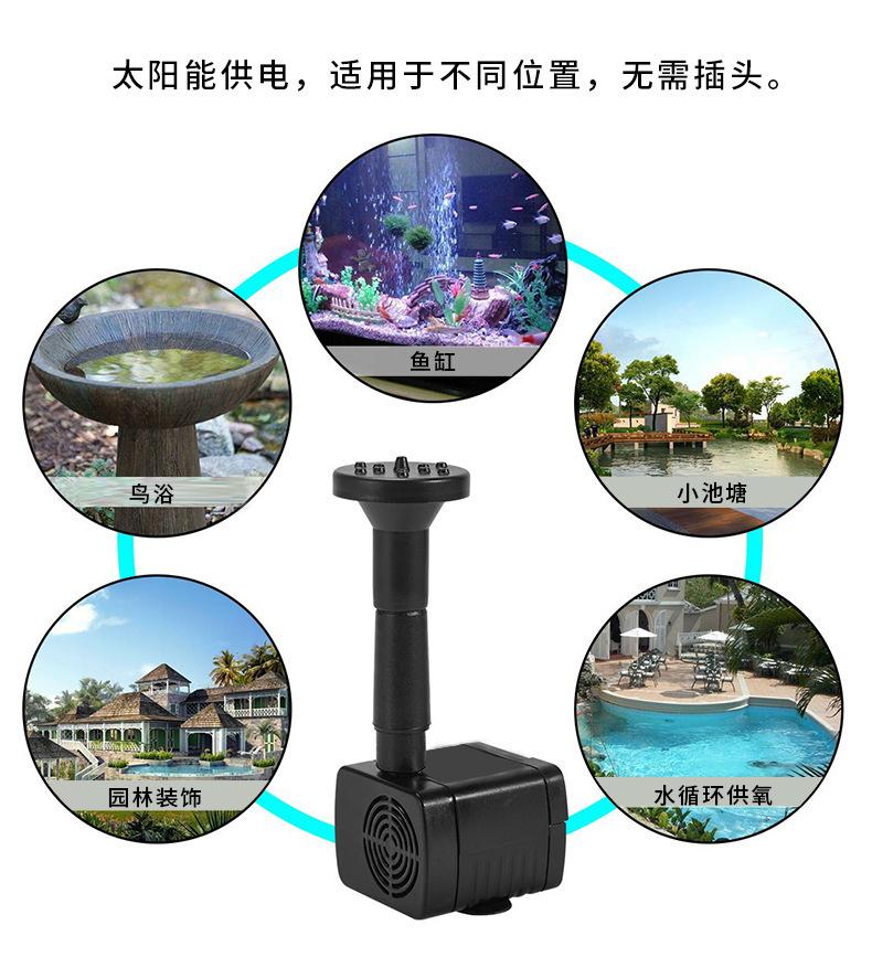 2) Coloque el panel solar en un lugar adecuado para asegurar que la luz no sea bloqueada por otros objetos. Cuando los paneles solares reciben suficiente luz, la bomba de agua funciona con normalidad.