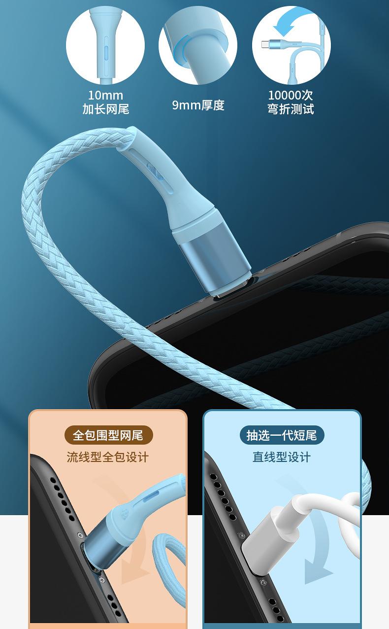 Cable de Carga Rápida Adecuado para Teléfonos Móviles Apple y Android Tipo-C, Estuche para Cable de Carga, Cable de Datos, USB Digital Trenzado