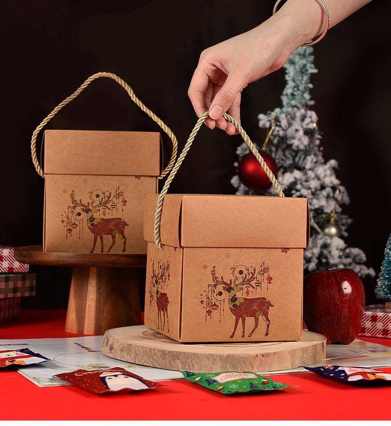 Compra Caja de Manzana Navideña Caja Portátil Papel Kraft Vintage Embalaje Nochebuena Jardín de Niños Infantil Caja de Regalo para Frutas Grande al por mayor en Joom.pro