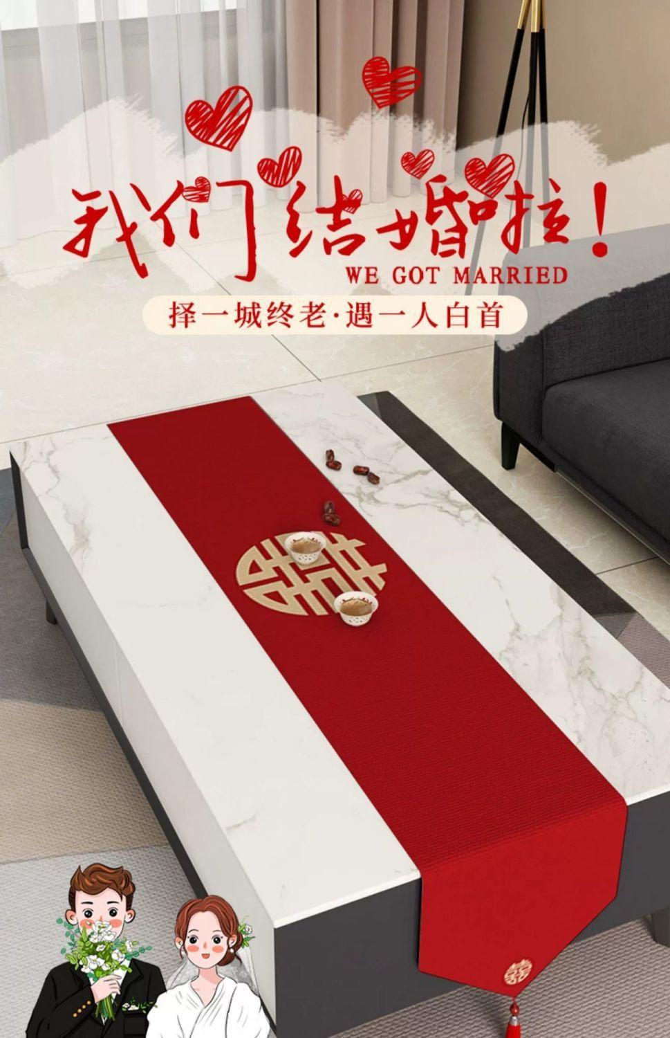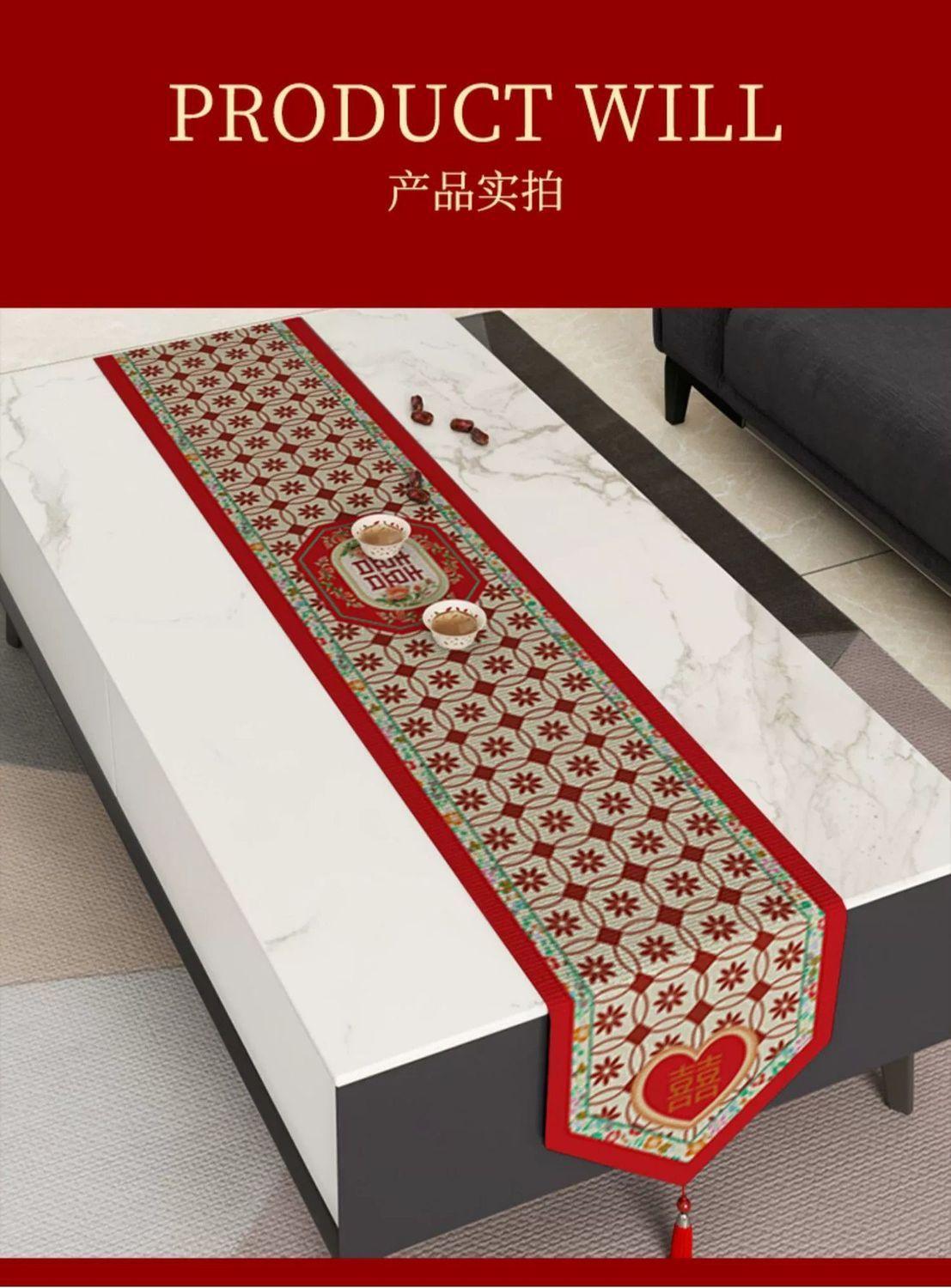 Camino de mesa con personaje Xi para boda, decoración de boda roja, mantel para mesa de café, mantel para boda, mueble de TV festivo, mesa de comedor, mantel largo