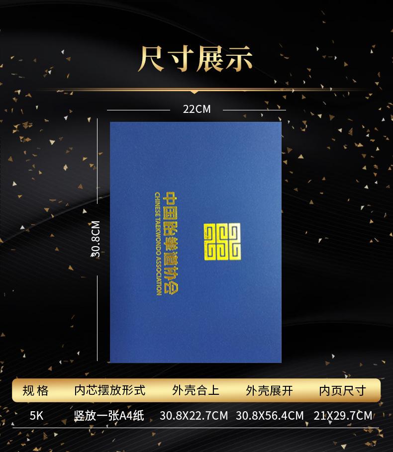 The Chinese Taekwondo Association certificate (without inner core) can hold A4 inner pages