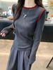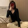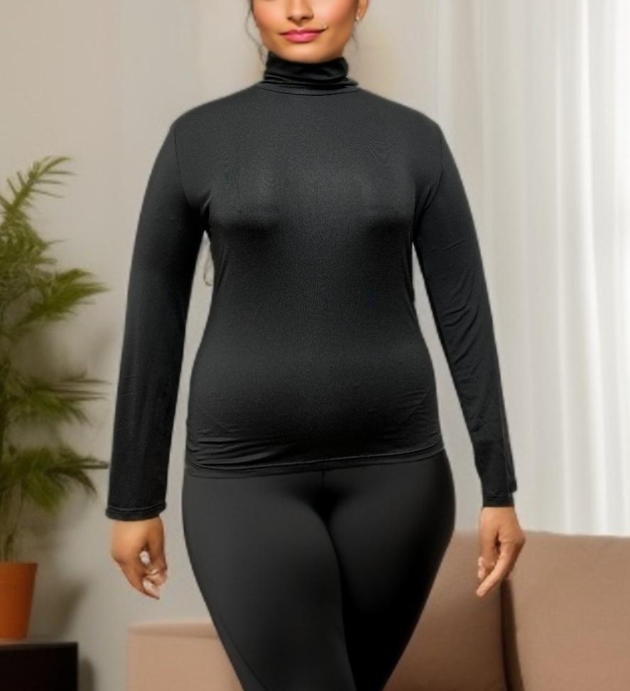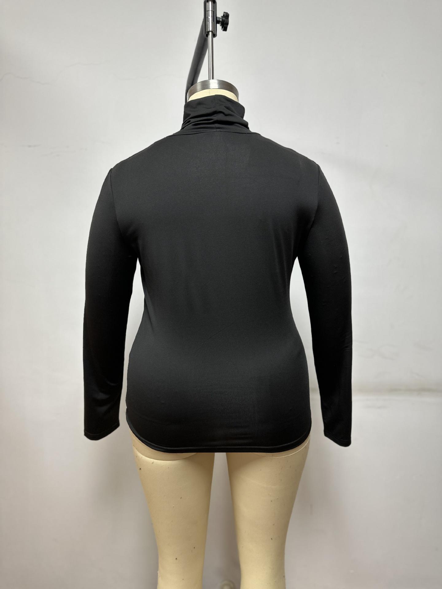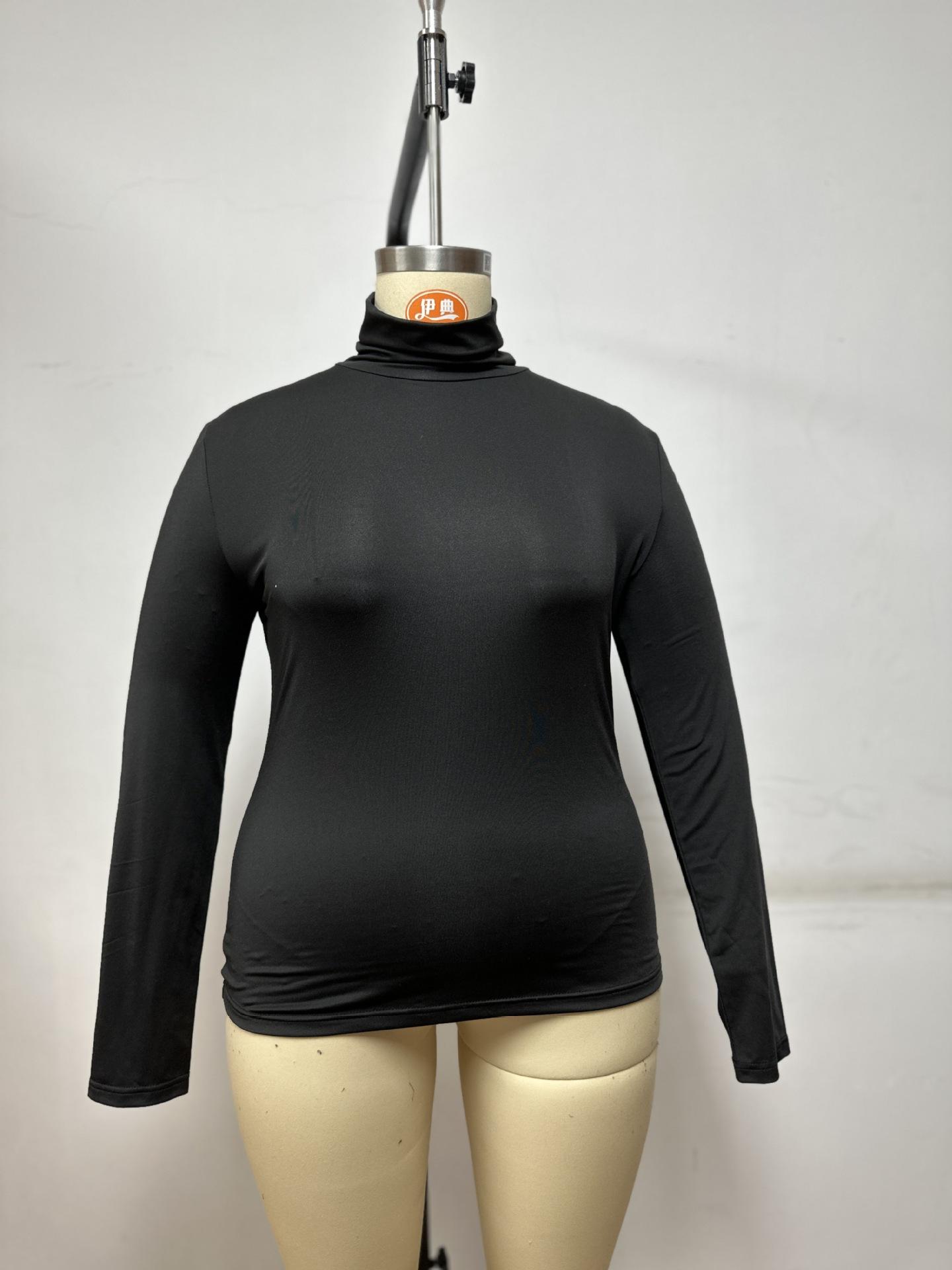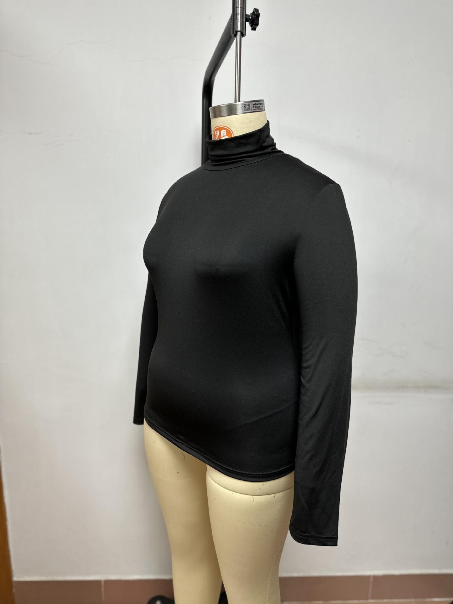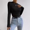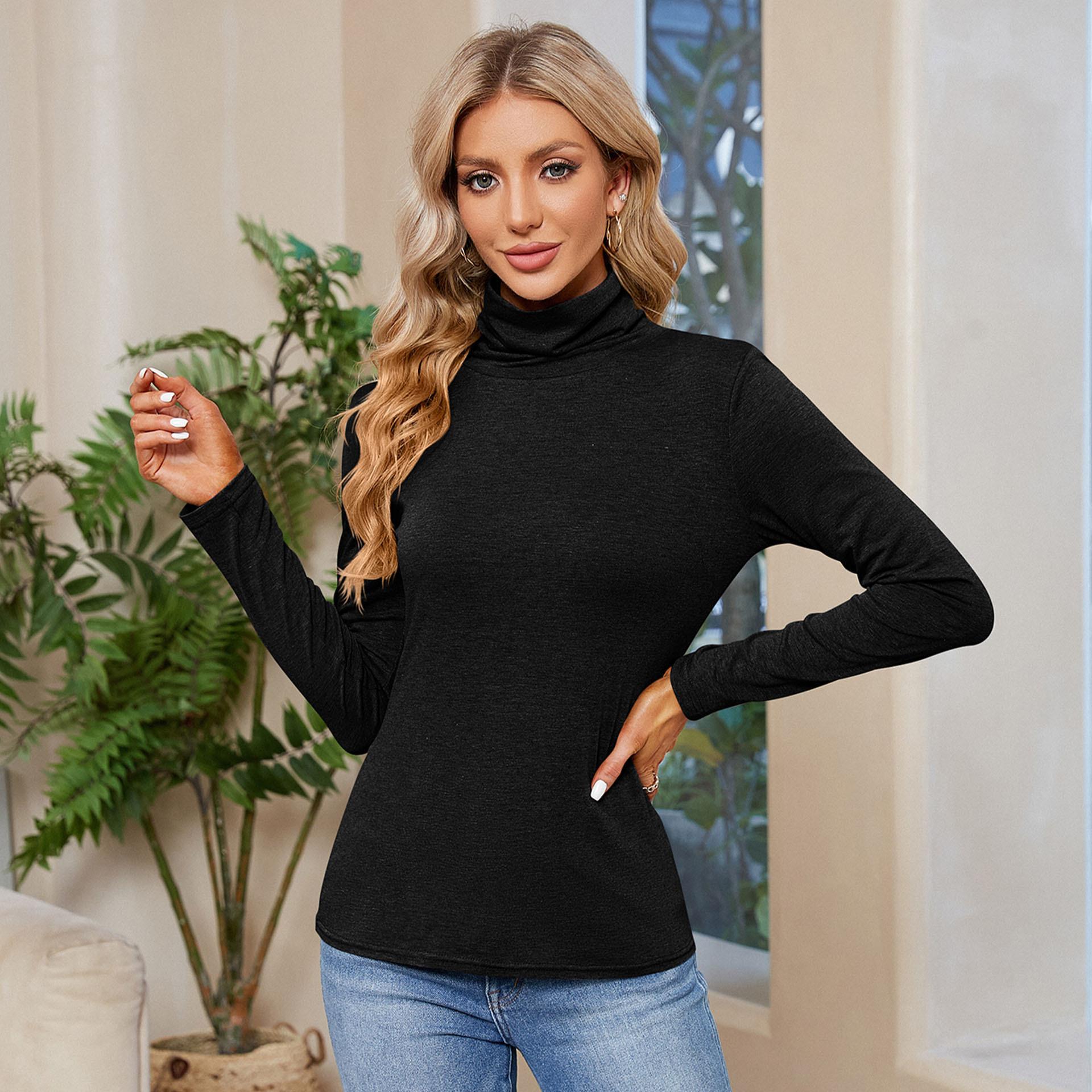 Camiseta de punto ajustada de manga larga con cuello alto de color liso para mujer, otoño e invierno, comercio exterior transfronterizo europeo y americano, talla grande, 2024