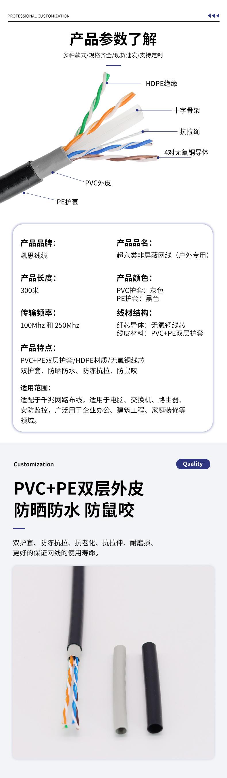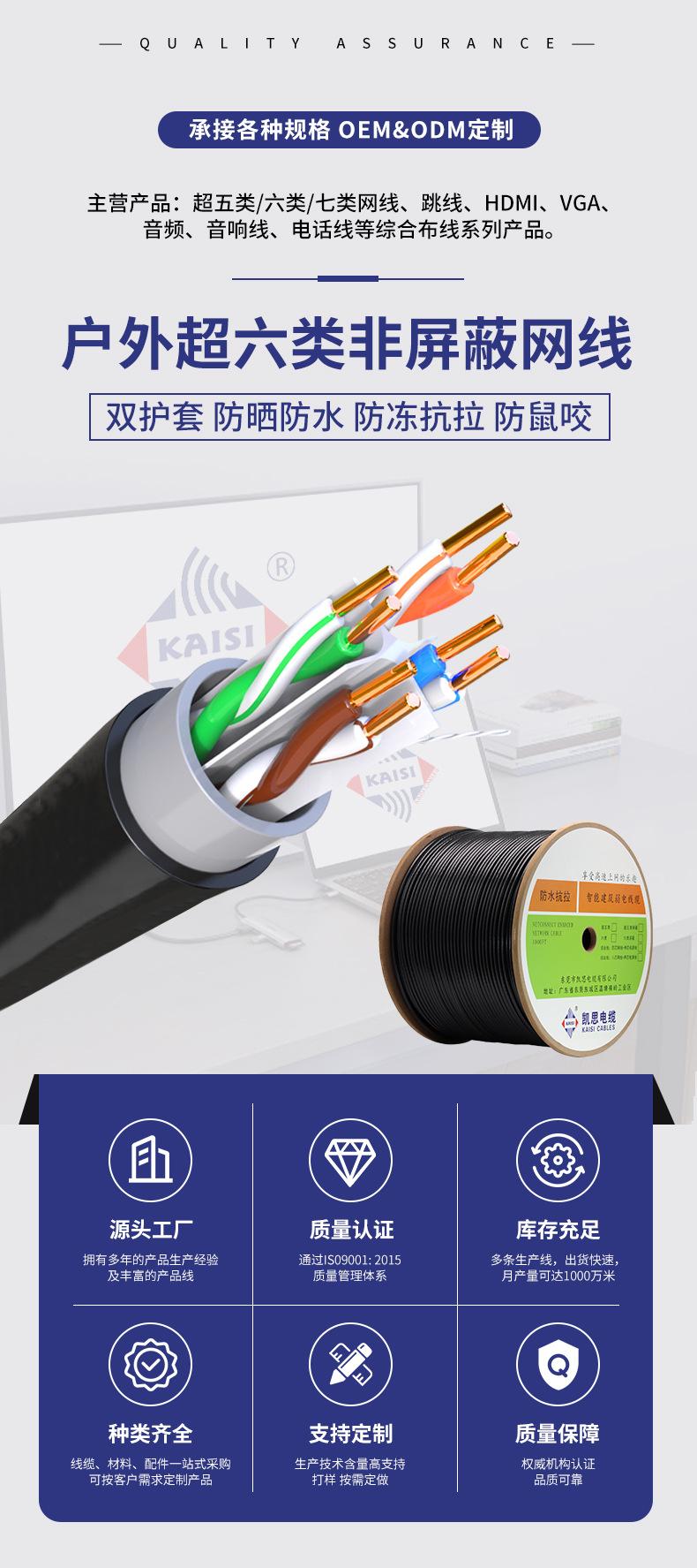 Compra Cable de red exterior Super Six sin blindaje UTP Cat6e 0.58 de cobre libre de oxígeno, resistente al agua y a la tracción, 300 m al por mayor en Joom.pro