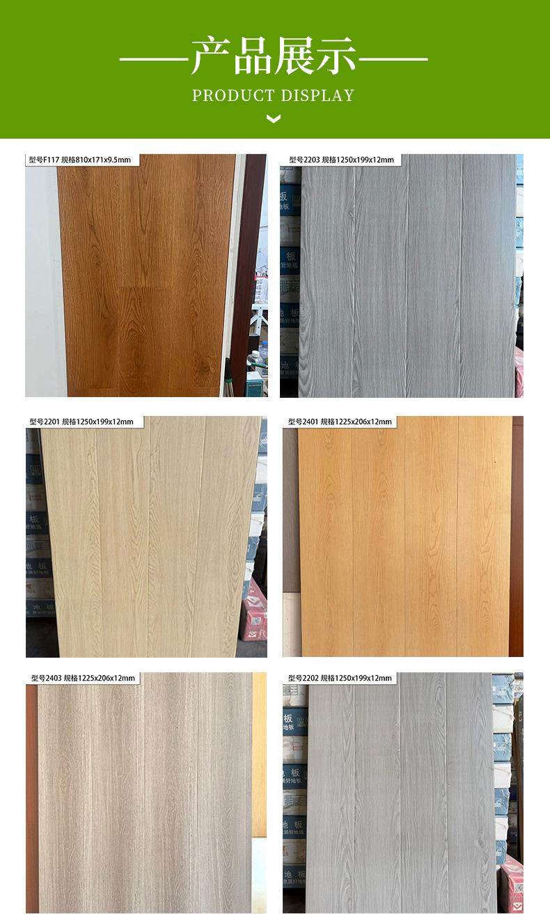 Piso de Madera Compuesta Reforzada de 12 mm en Stock Estilo Crema Gris Dormitorio Casa de Alquiler Tablero de Ingeniería Empalme para el Hogar