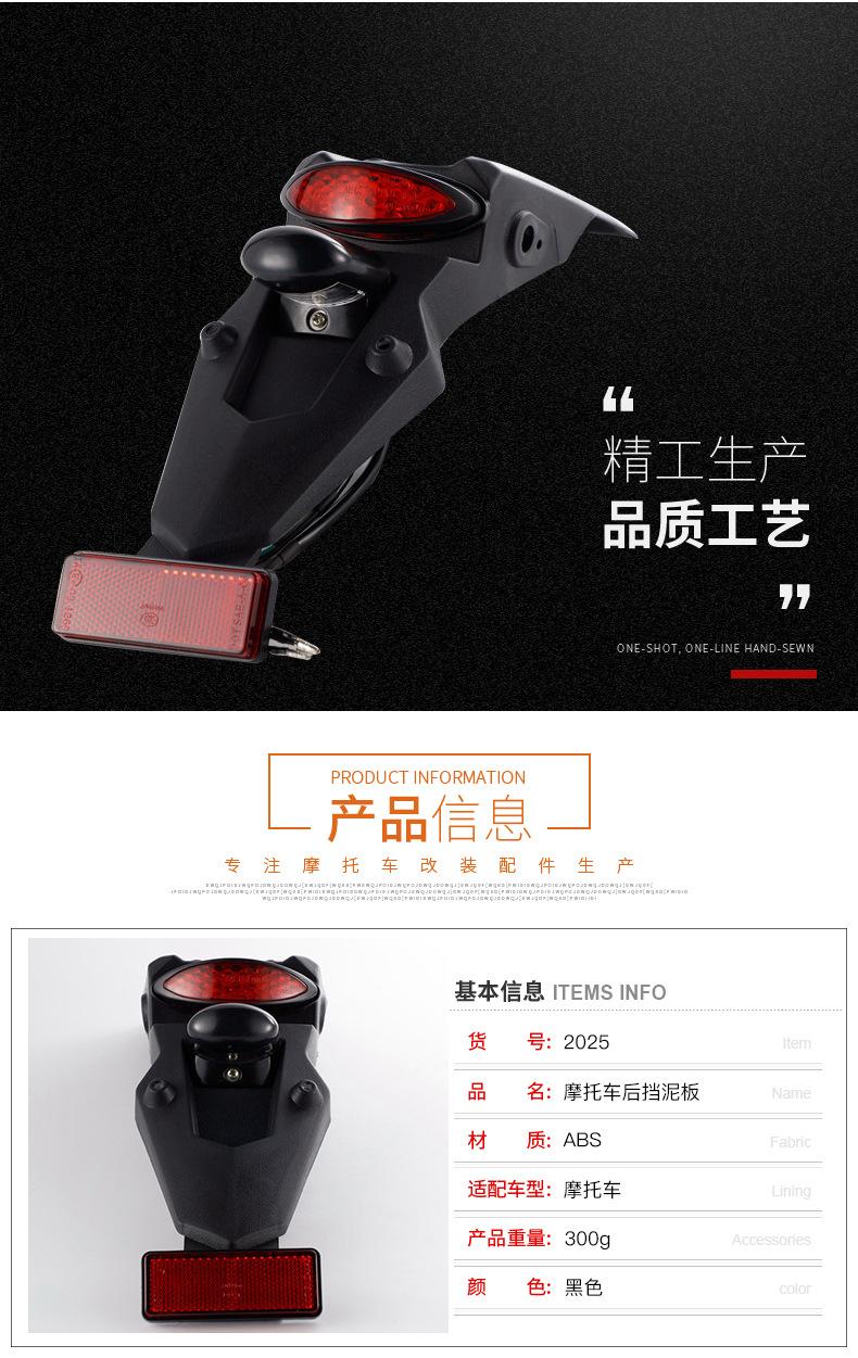 Motocicleta vehículo todoterreno guardabarros trasero accesorios universales luz de placa luz trasera LED guardabarros trasero ventas directas de fábrica