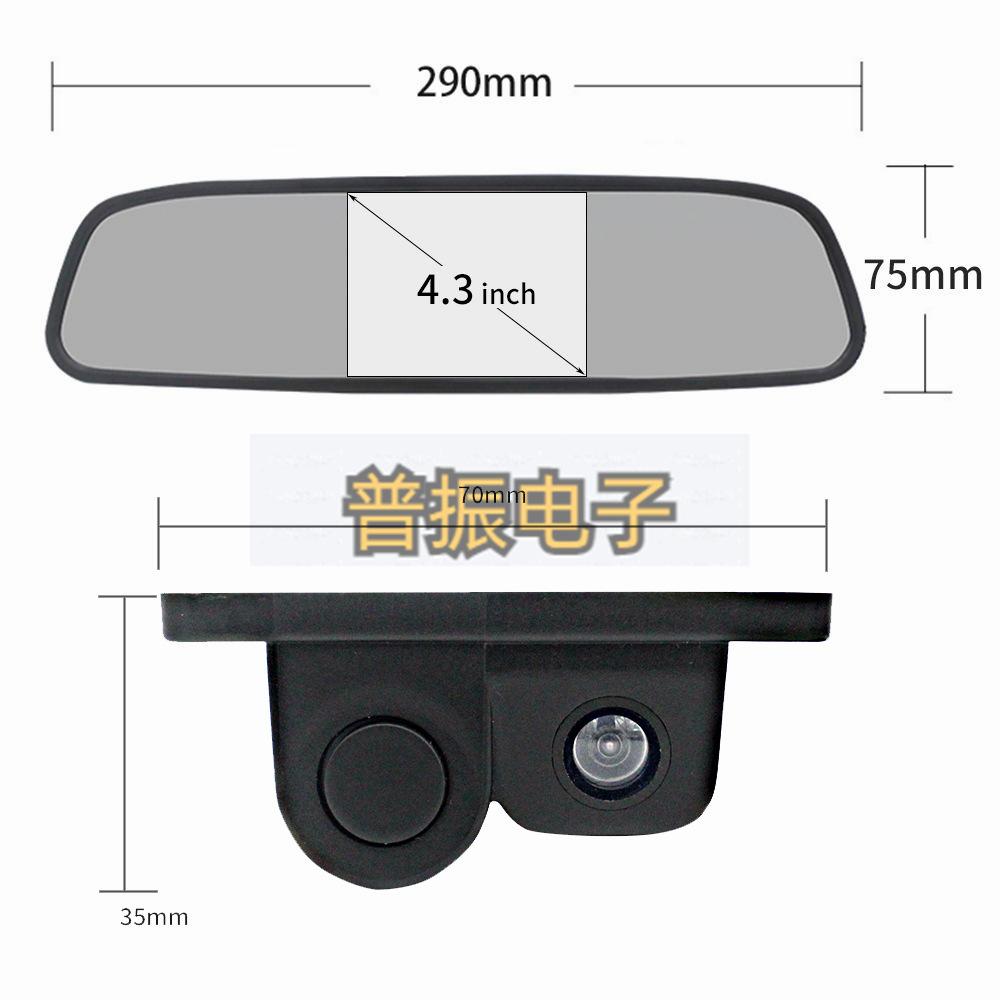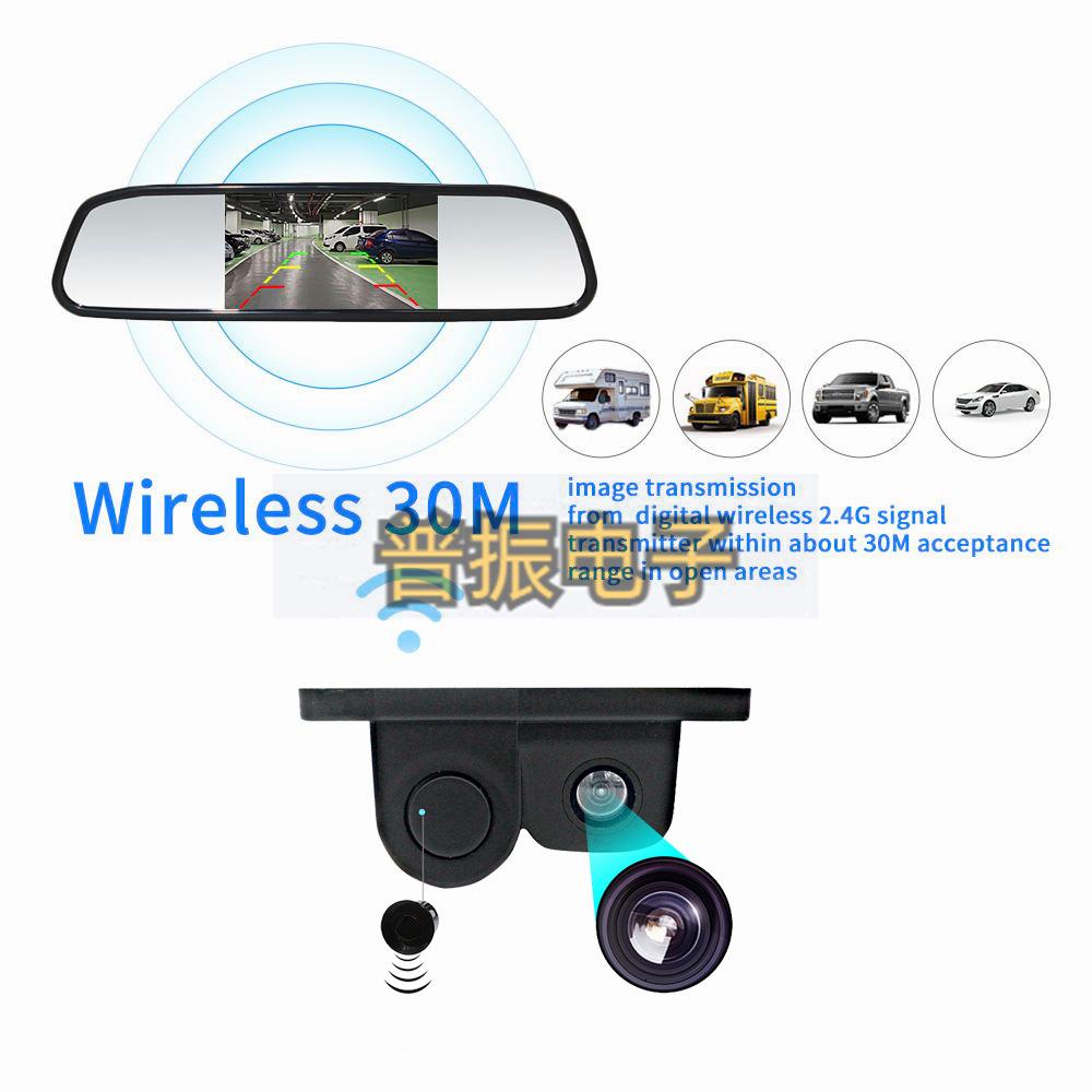 Cámara de radar de marcha atrás con pantalla de espejo retrovisor inalámbrico de 4,3 pulgadas para coche, todo en uno