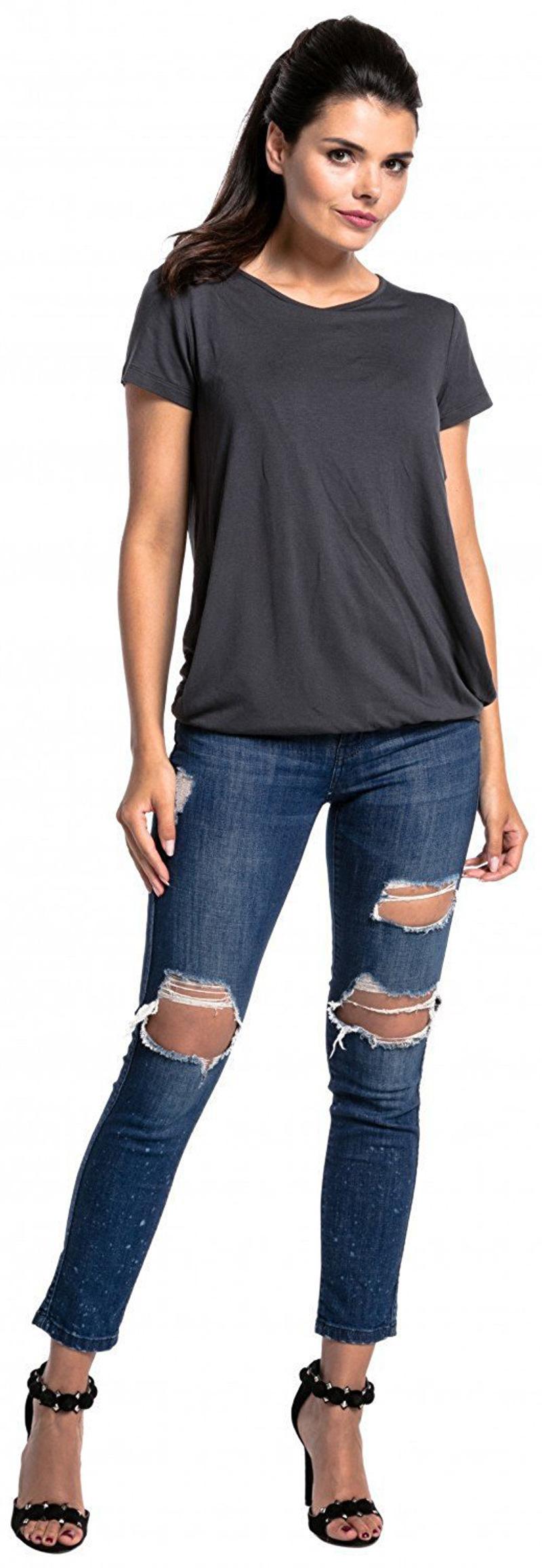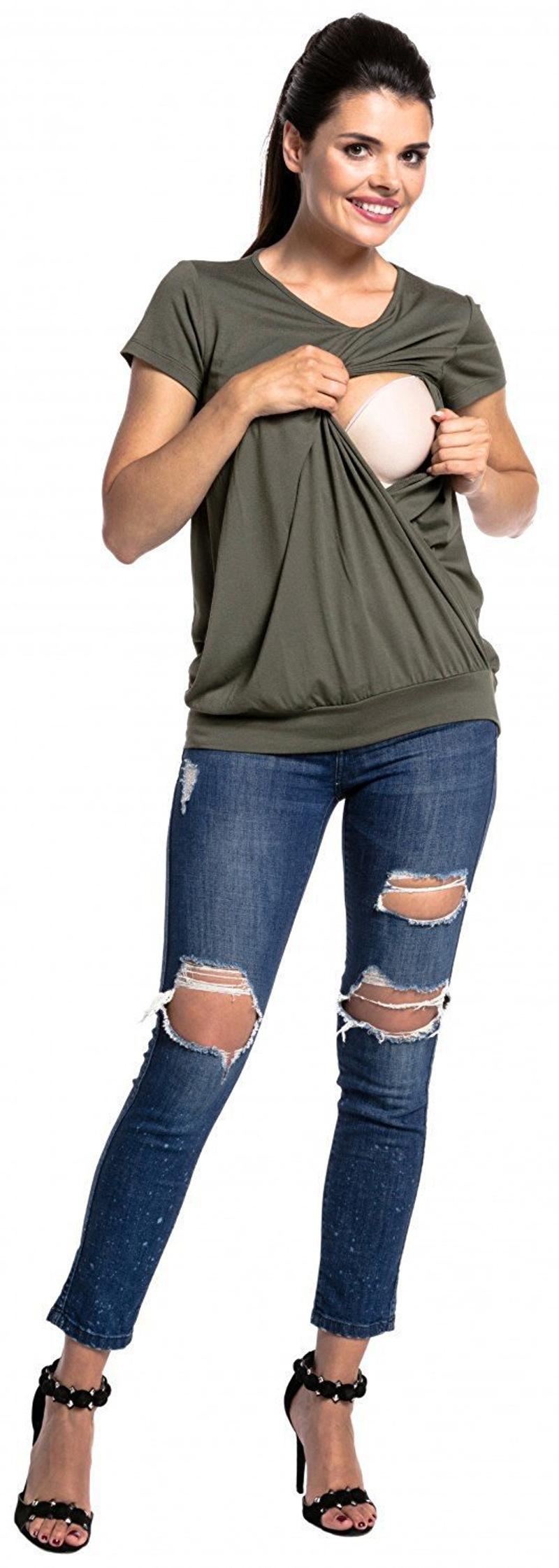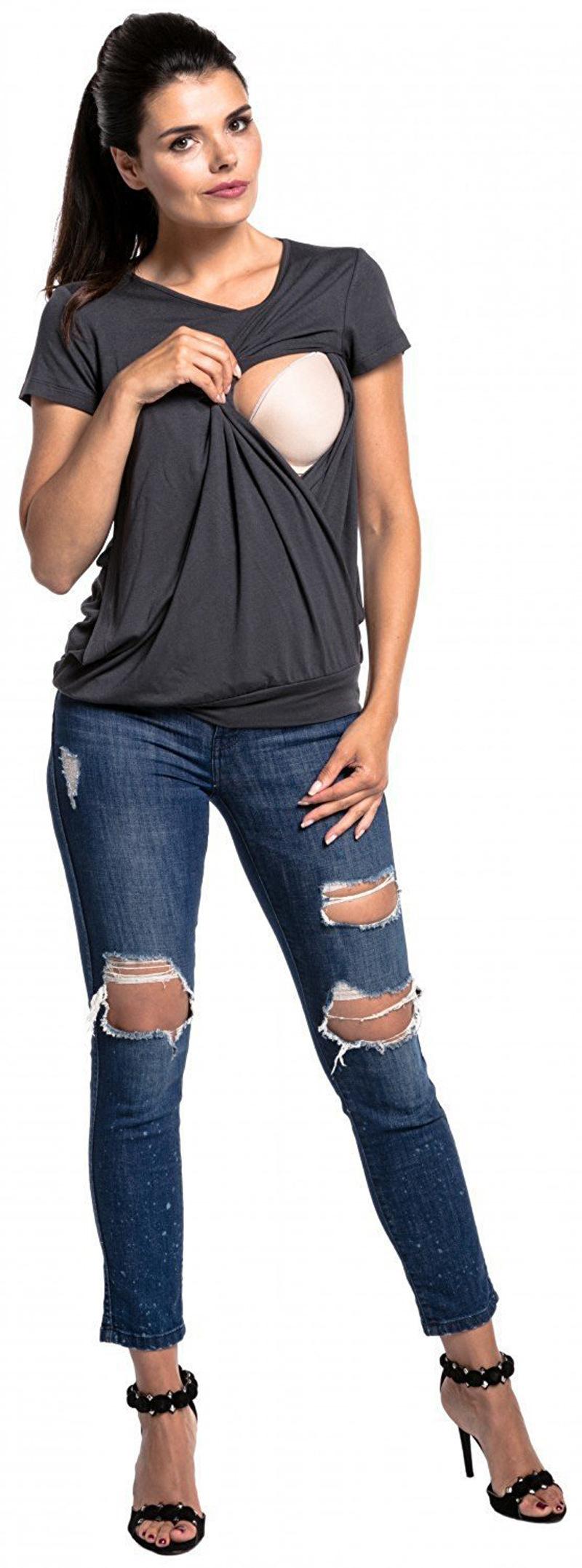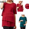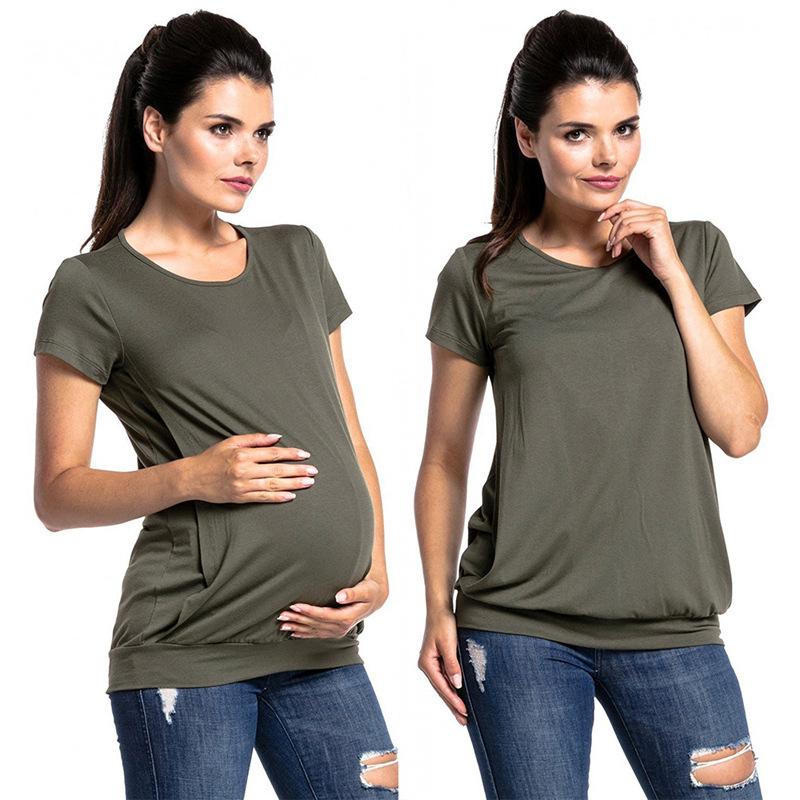 2019 Amazon Tops de Camiseta Corta Ebay Europeo y Americano Nuevo Cuello Redondo Manga Corta Ropa de Maternidad Camiseta de Lactancia Moderna