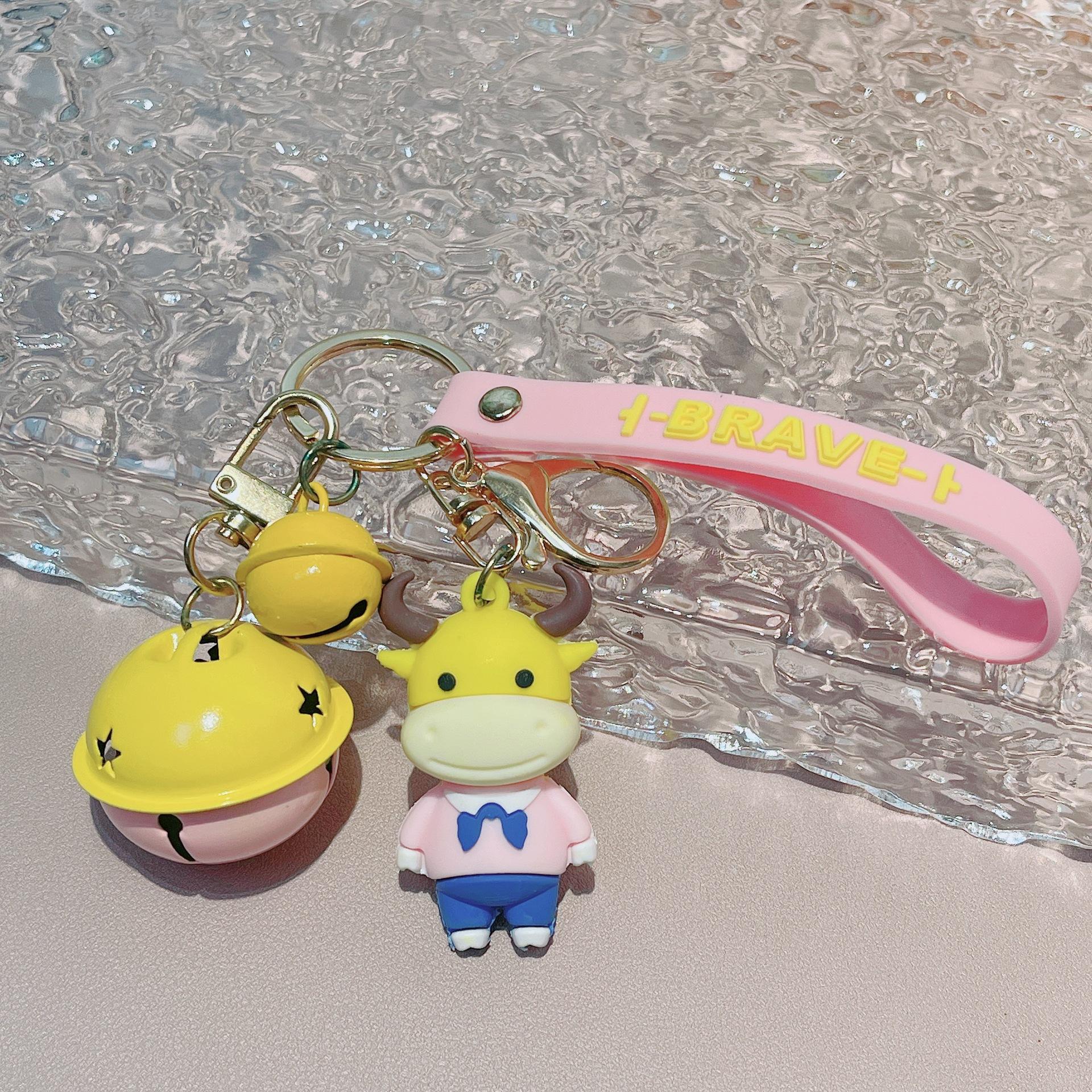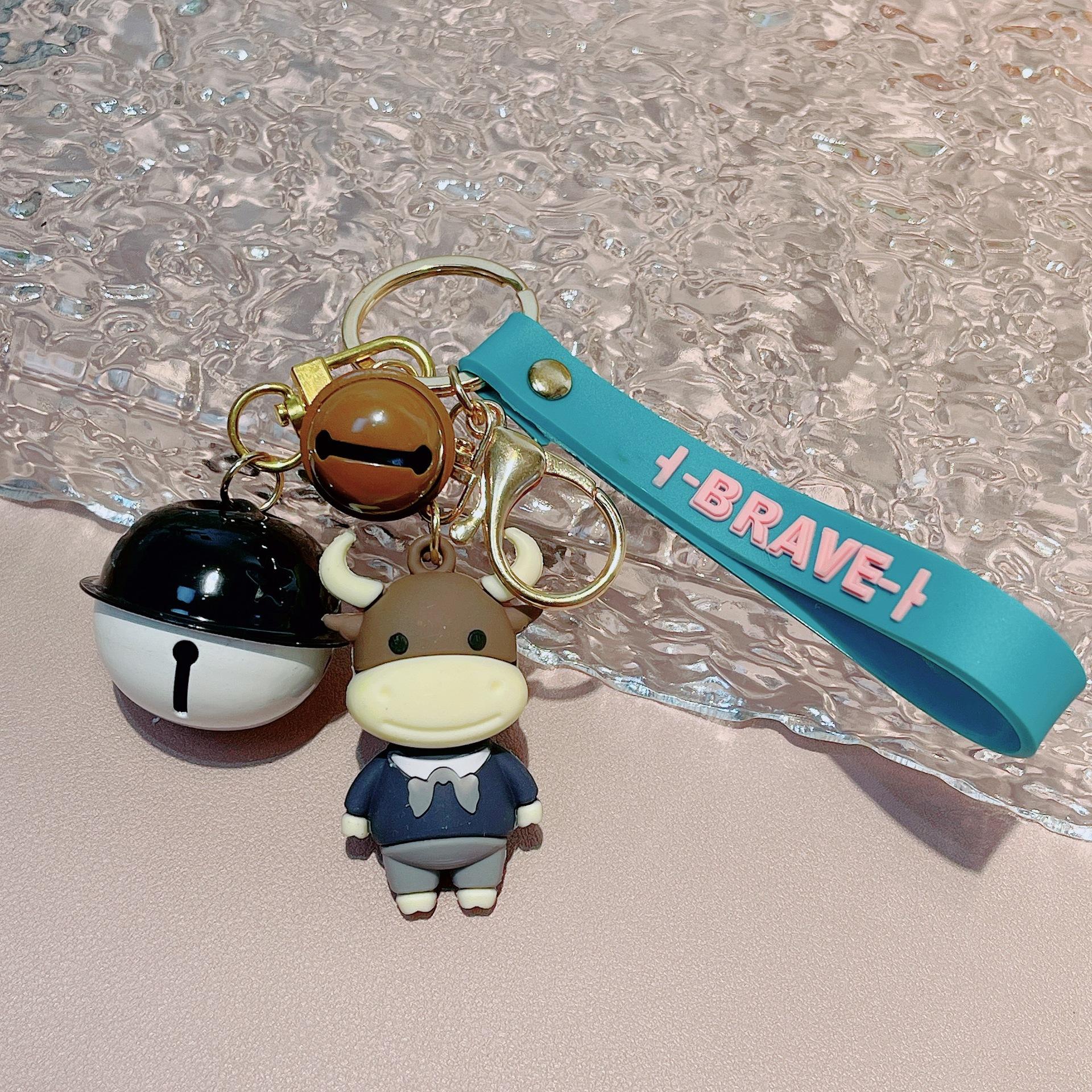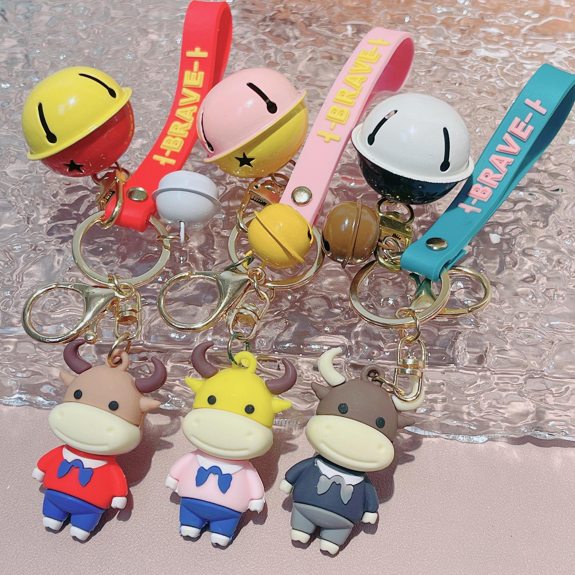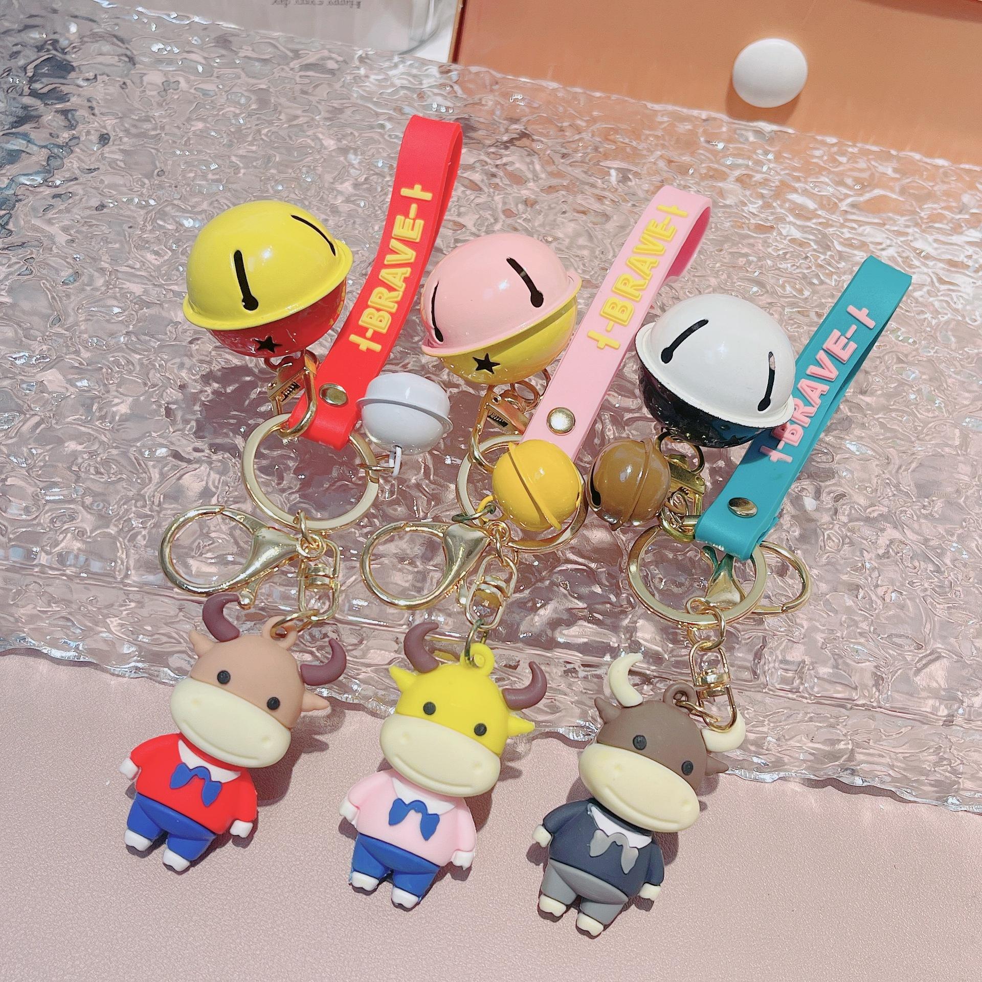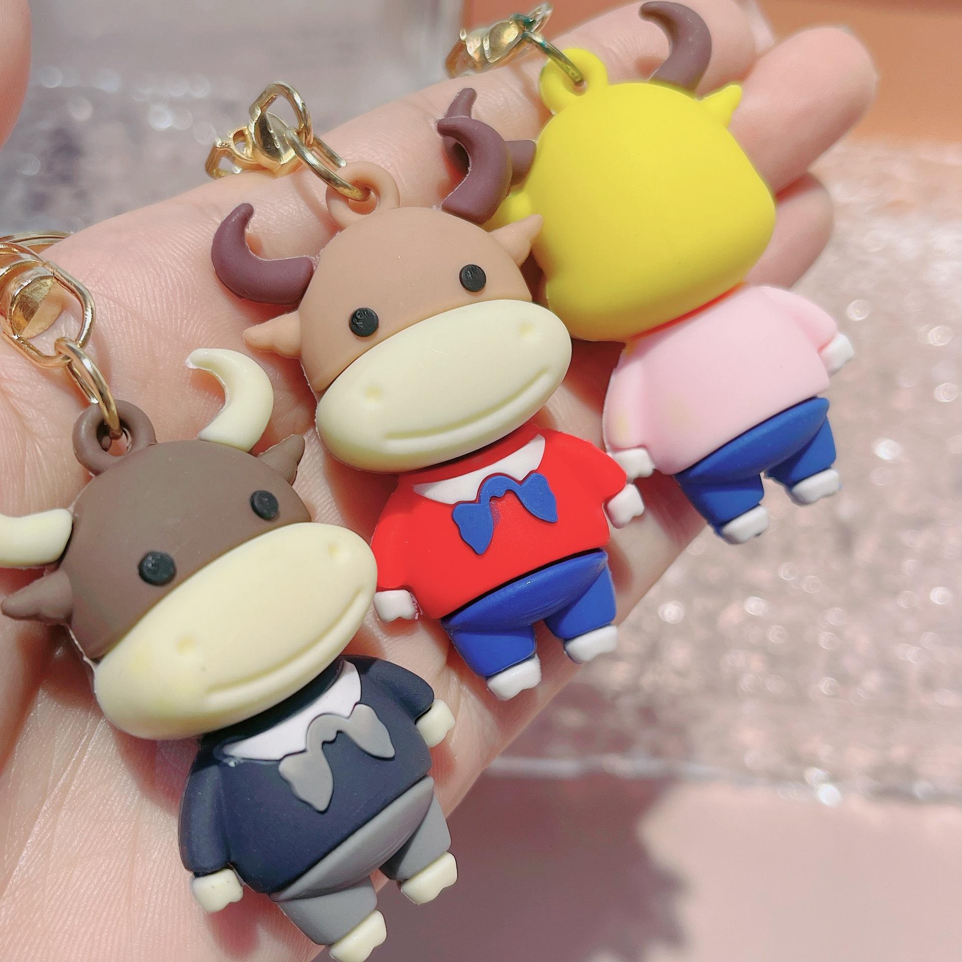 Llavero con colgante de vaca del zodiaco de dibujos animados, linda muñeca para pareja, adorno para mochila escolar, llavero de coche, pequeño regalo