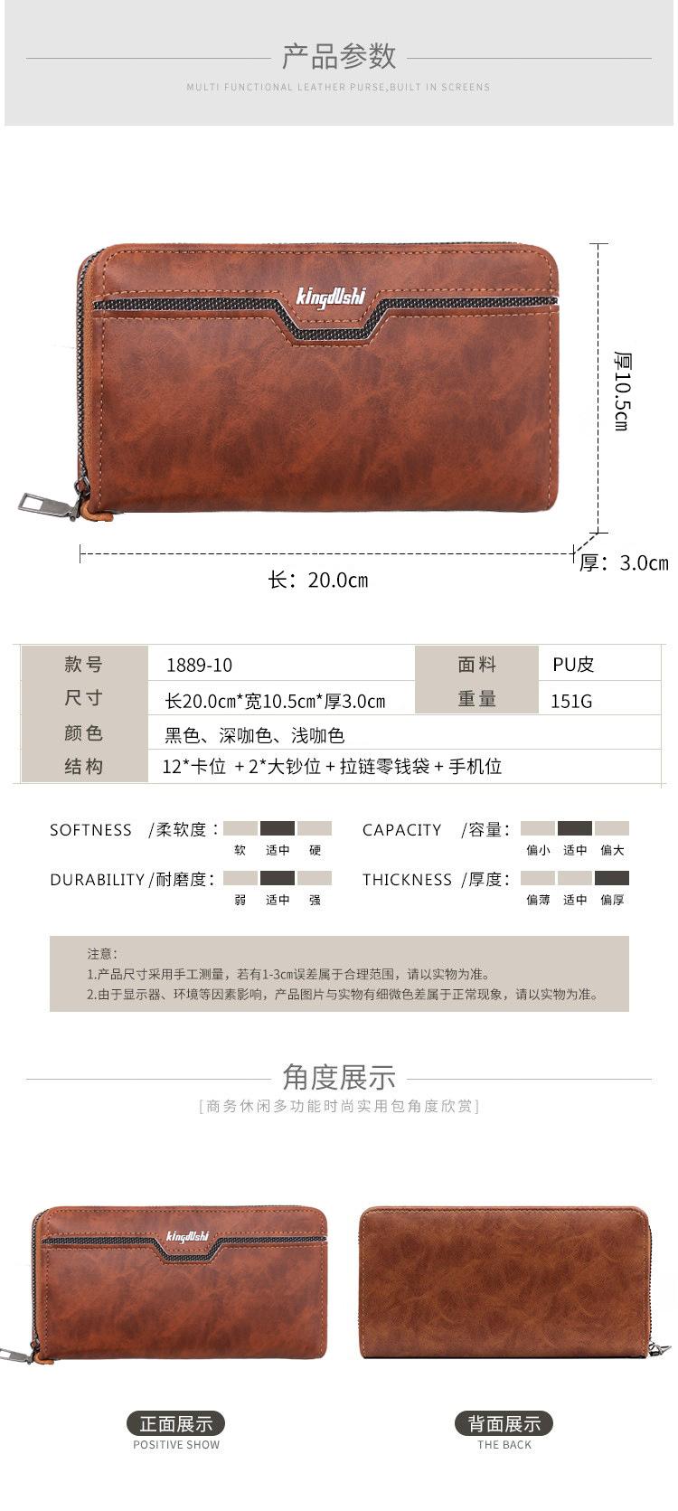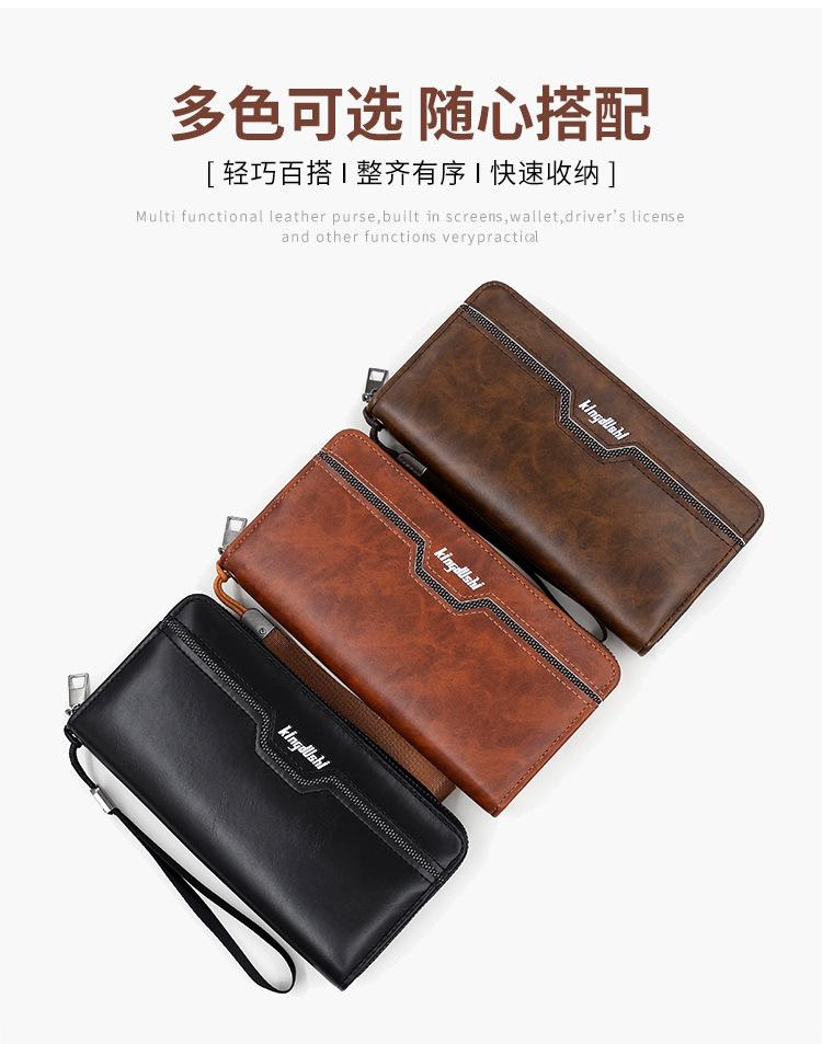 Venta directa de cartera larga para hombre, informal, de negocios, con cremallera, de gran capacidad, con múltiples tarjetas, para teléfono móvil, venta al por mayor