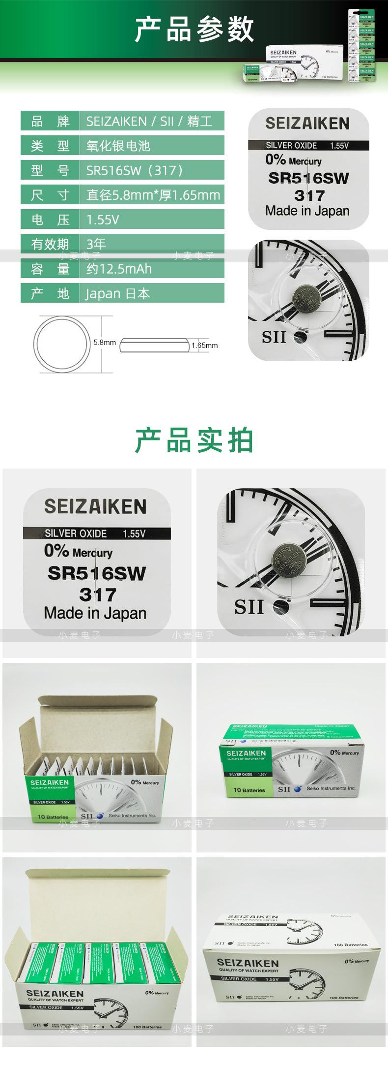 SEIZAIKEN Pila de botón para reloj Seiko 317/SR516SW reloj electrónico de cuarzo importado óxido de plata electrónico