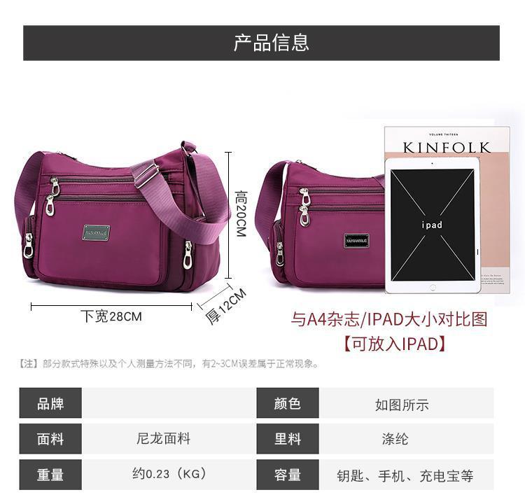 Bolso de tela para mujer, bandolera de hombro, para madres de mediana edad o mayores, informal, ligero, de nailon, estilo Oxford.