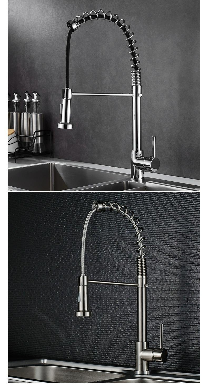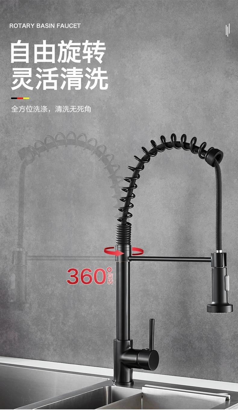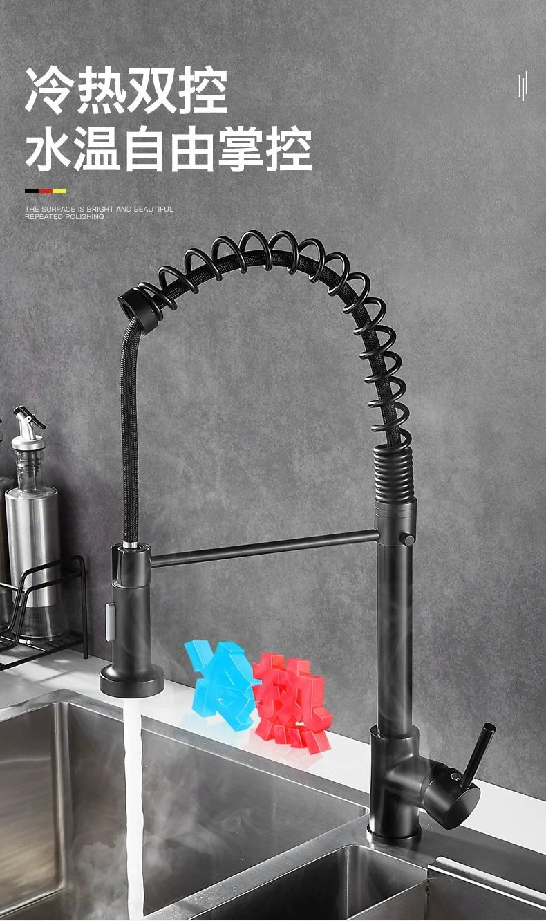 Grifo de cocina con resorte para fregadero, grifo para agua caliente y fría, para lavavajillas, pistola rociadora, ducha giratoria de acero inoxidable