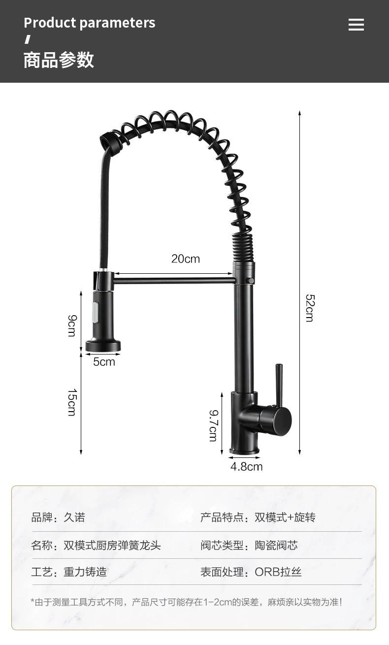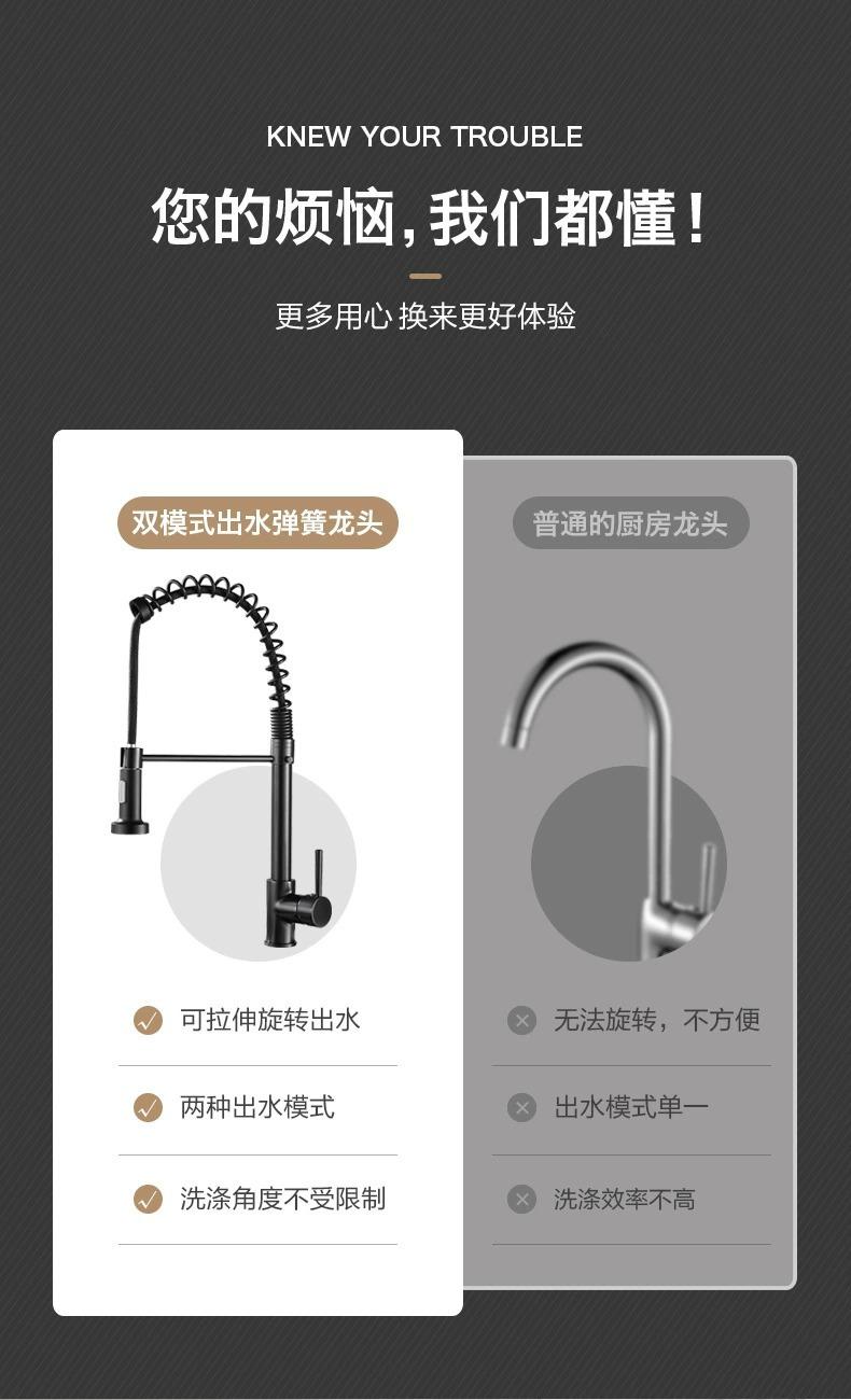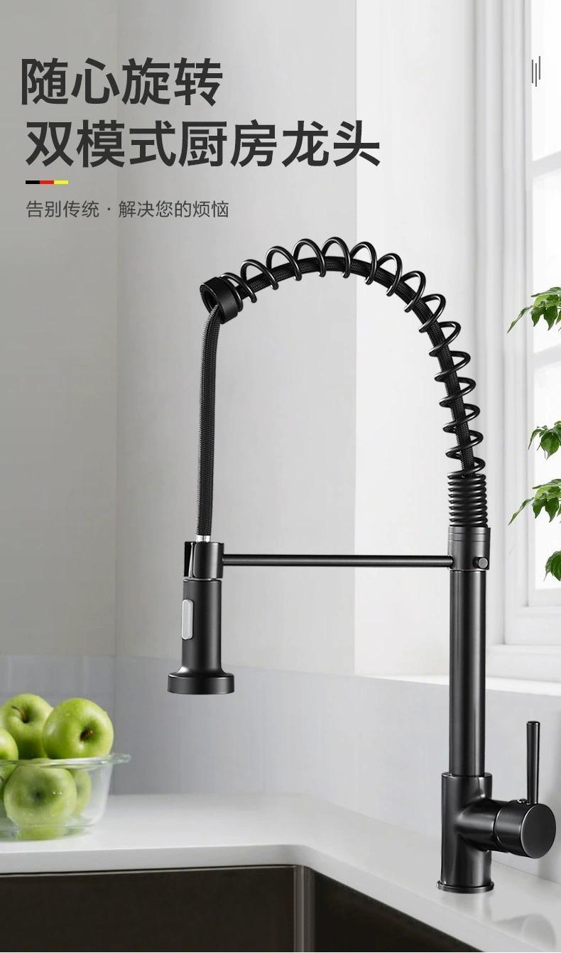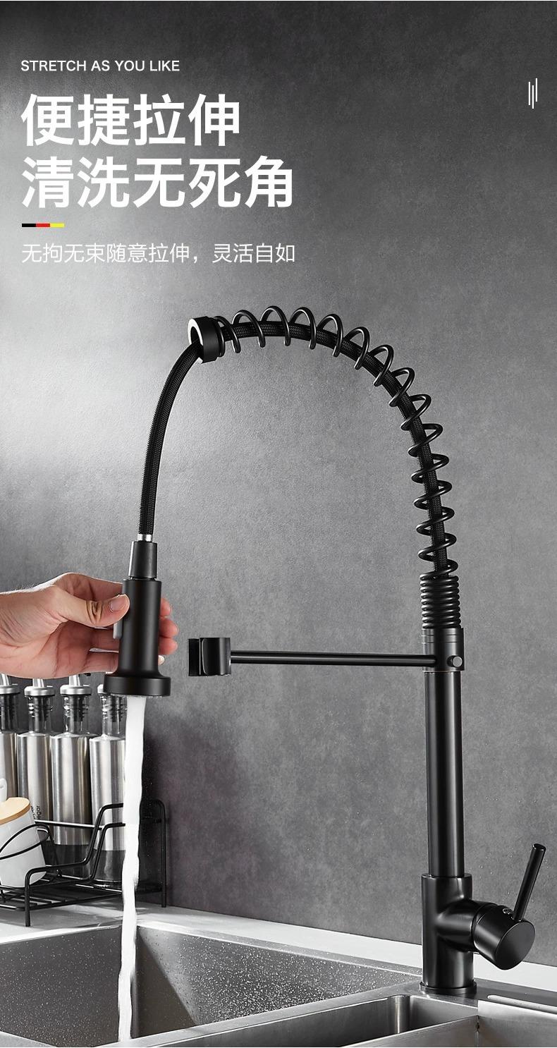Grifo de cocina con resorte para fregadero, grifo para agua caliente y fría, para lavavajillas, pistola rociadora, ducha giratoria de acero inoxidable