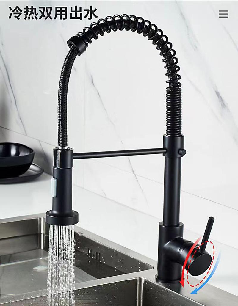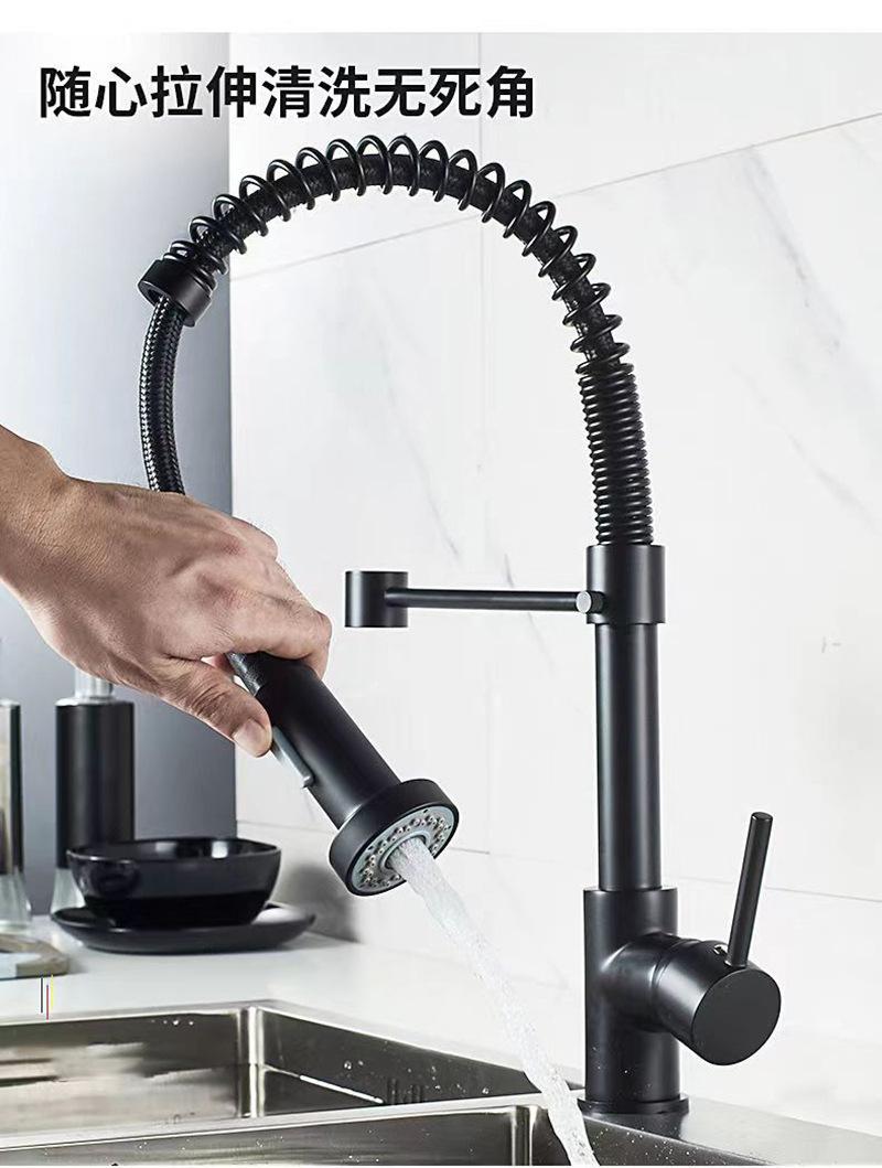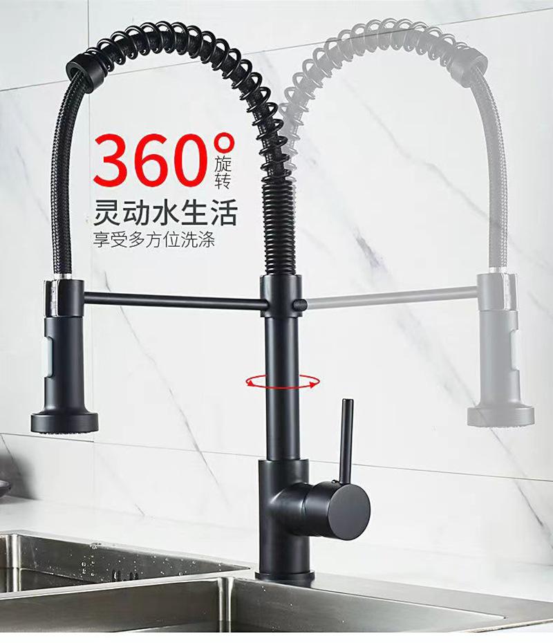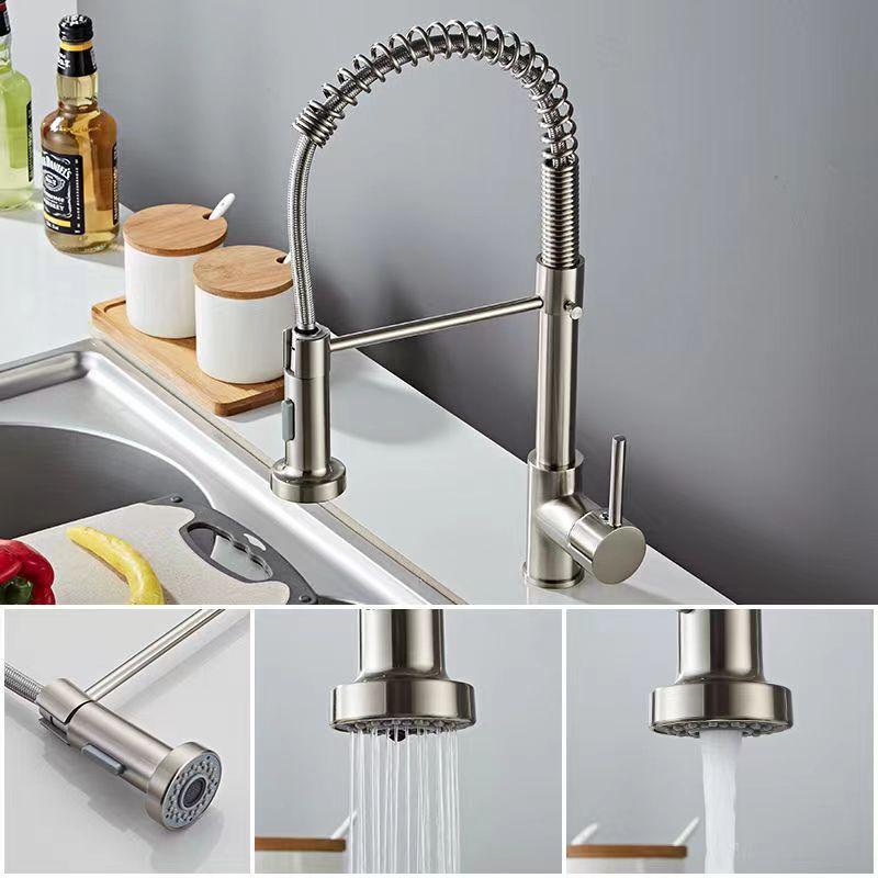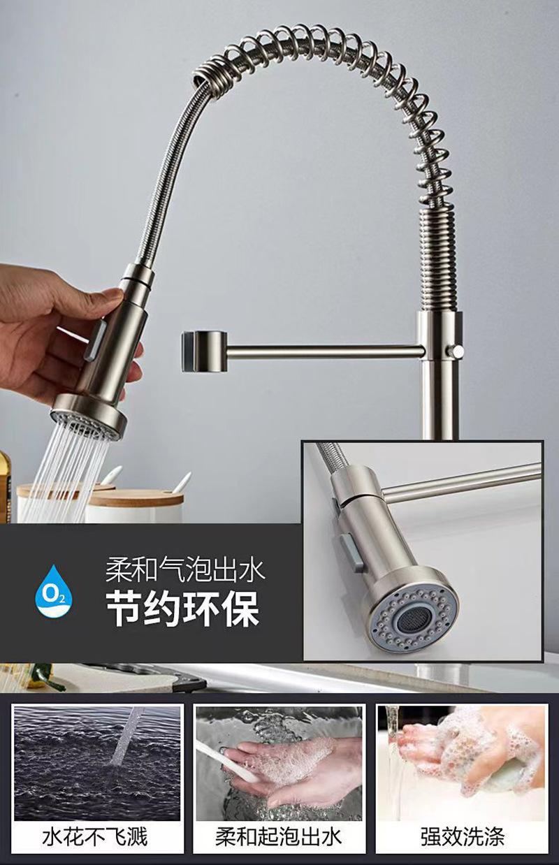 Grifo de cocina extraíble con resorte de acero inoxidable transfronterizo, grifo giratorio telescópico para fregadero de verduras.