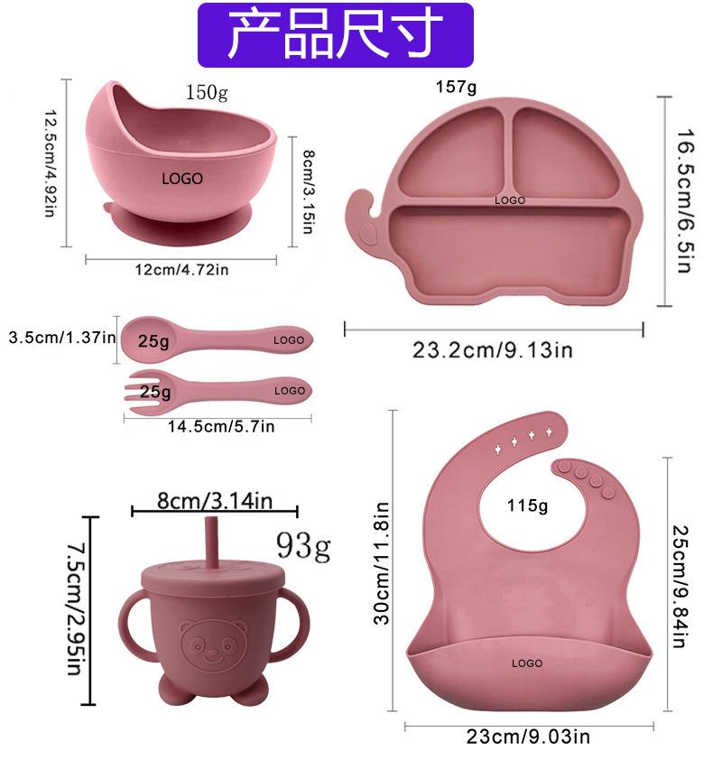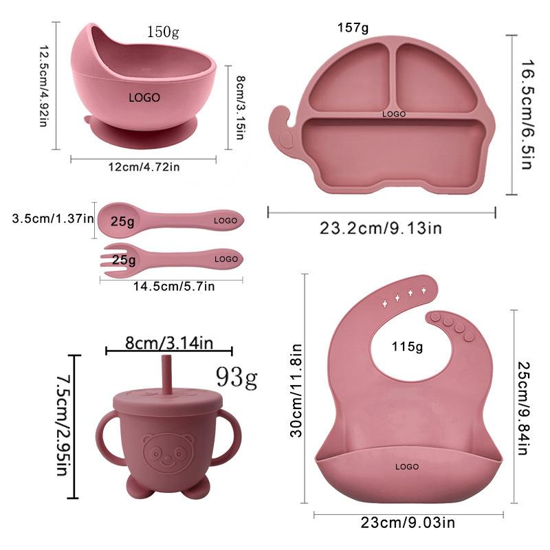 【Peso del producto】: Babero 115 g, Plato de elefante 157 g, Tazón 150 g, Vaso con pajita 93 g,
