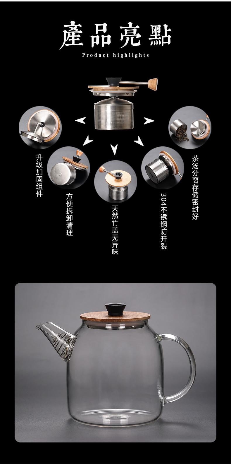 Tetera de vidrio de gran capacidad, tetera con filtro, tetera individual pequeña, tetera doméstica para té Pu'er, tetera eléctrica de cerámica