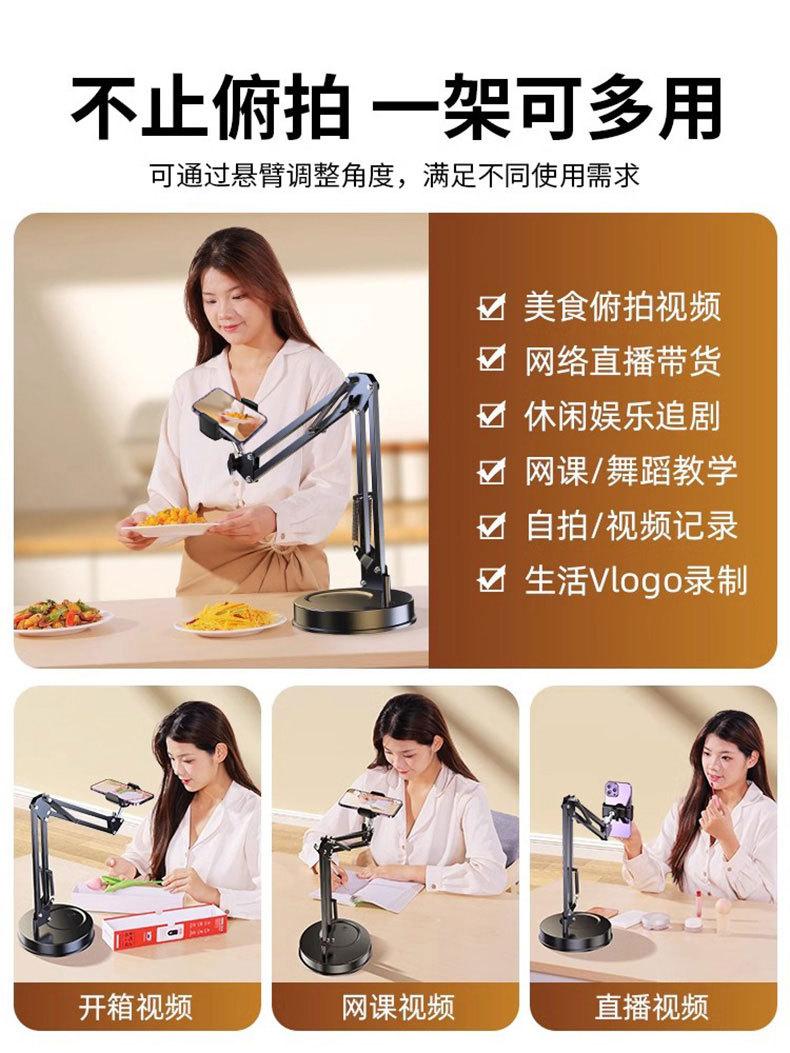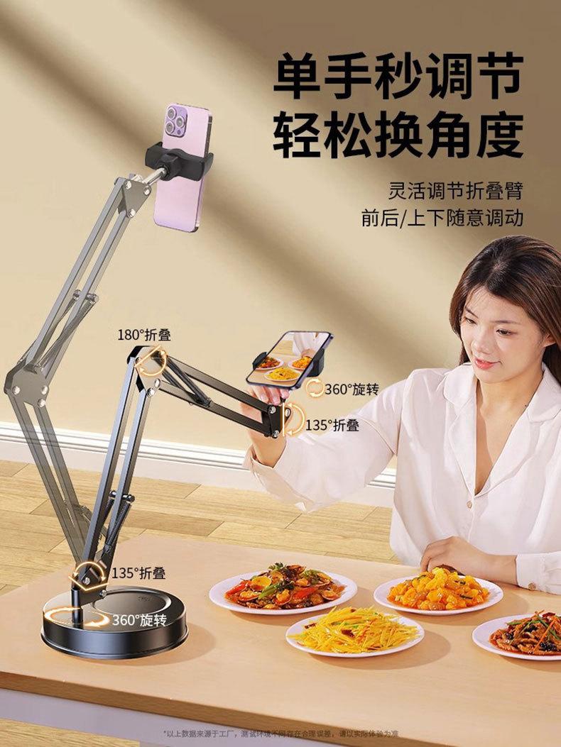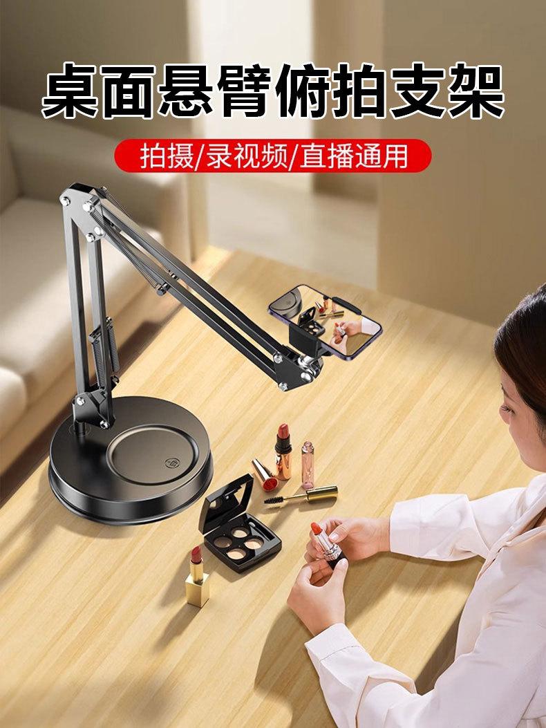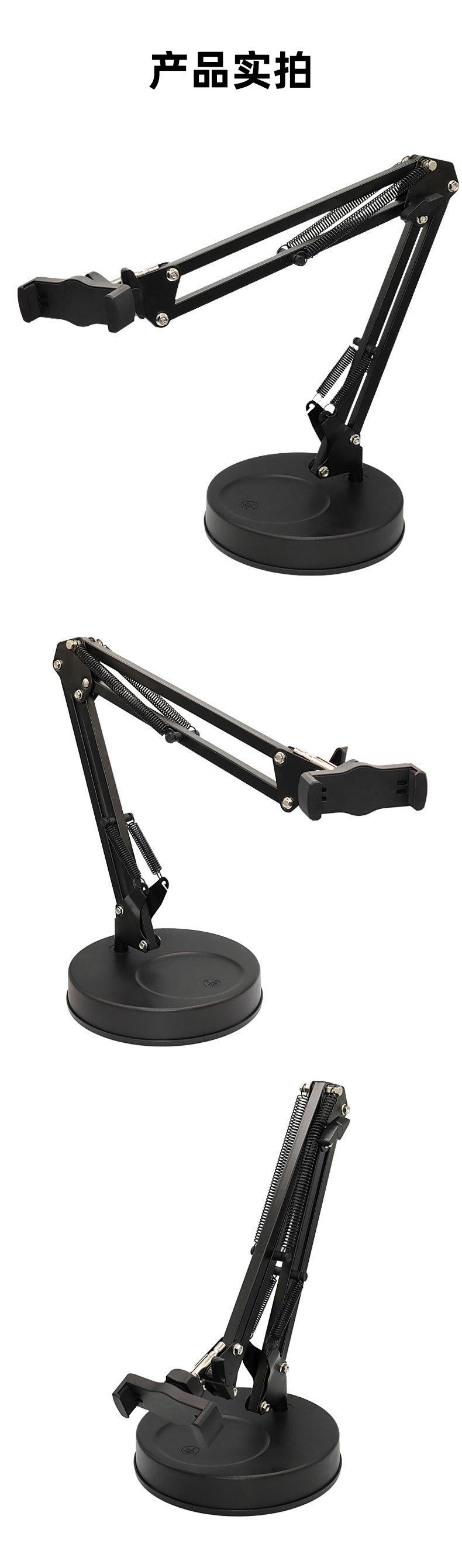 Soporte de fotografía en vivo para teléfono móvil al por mayor de fábrica, base ponderada, soporte de escritorio, soporte de disparo vertical en voladizo de metal