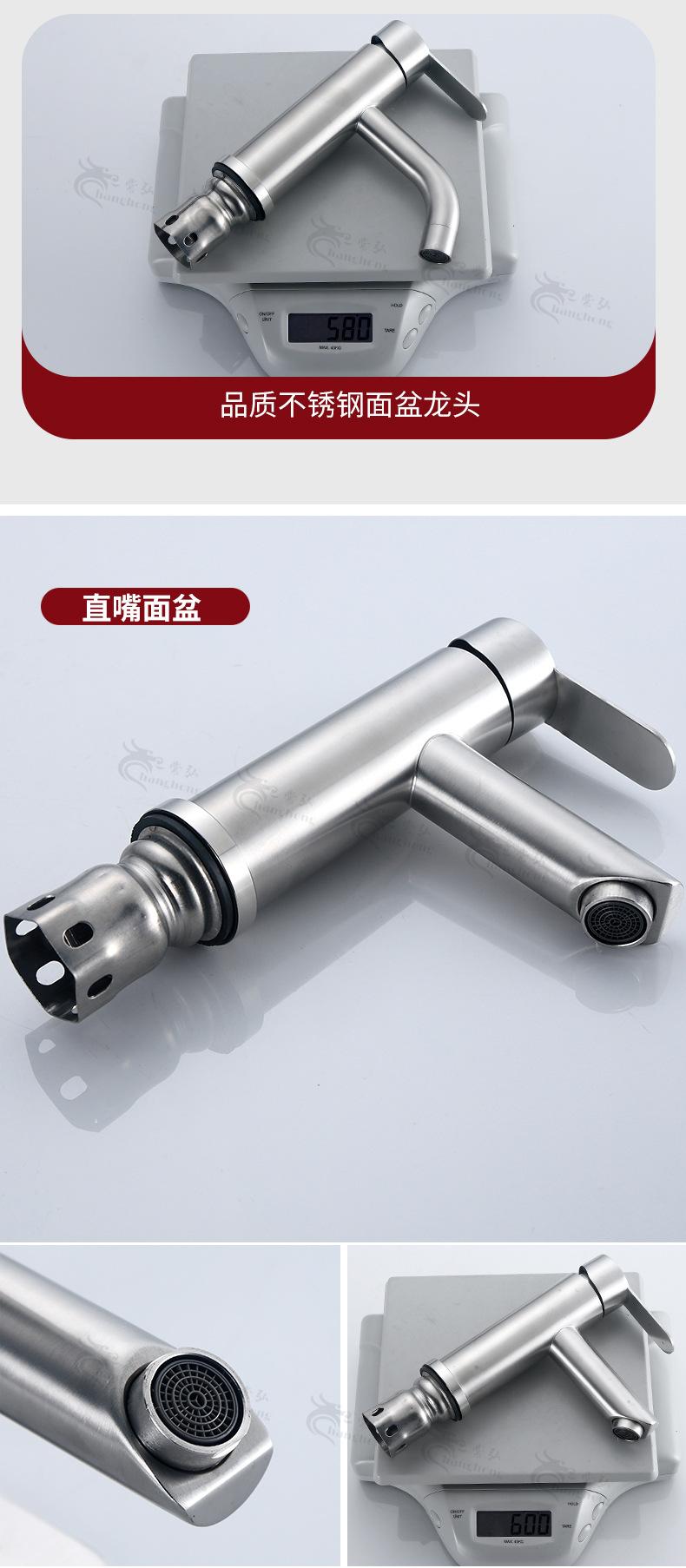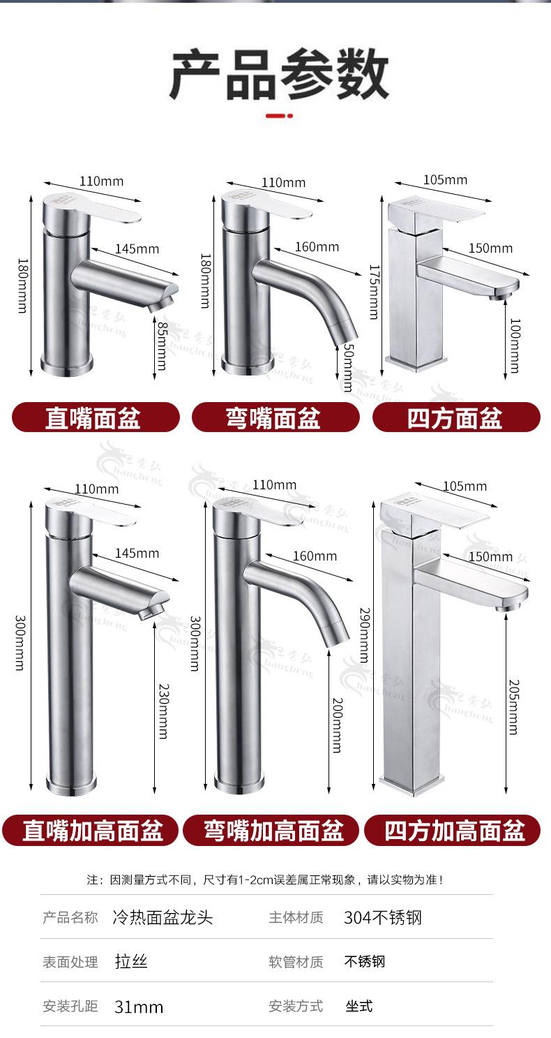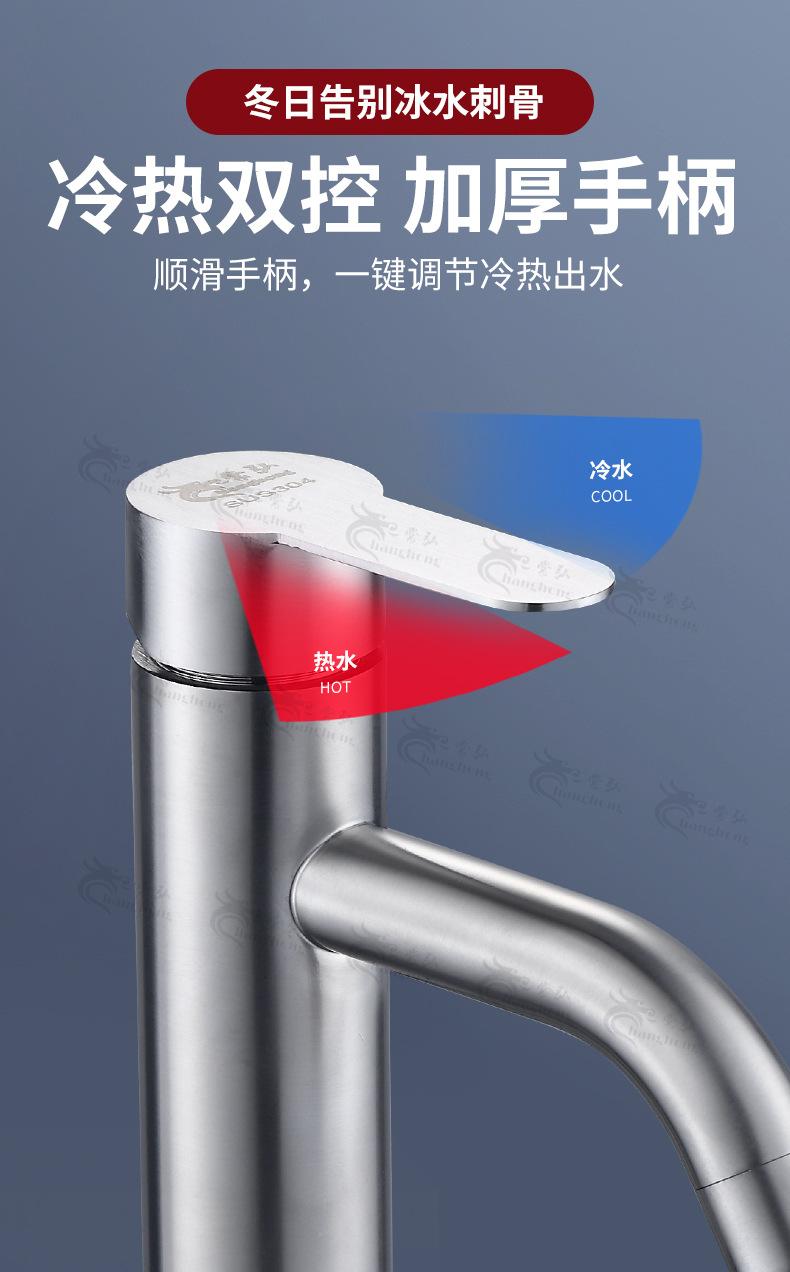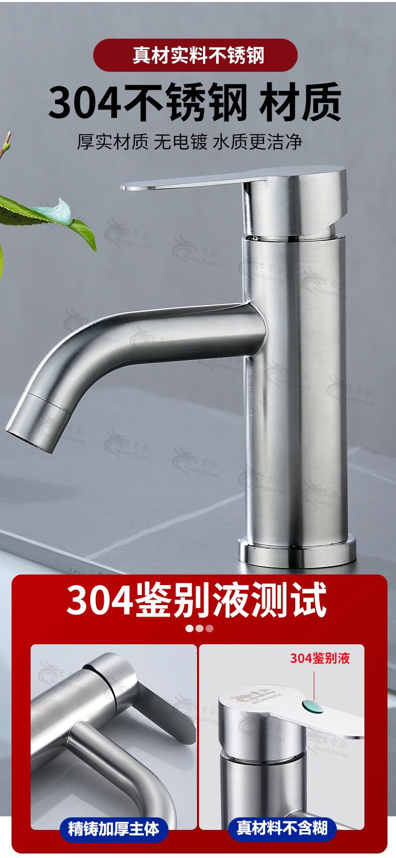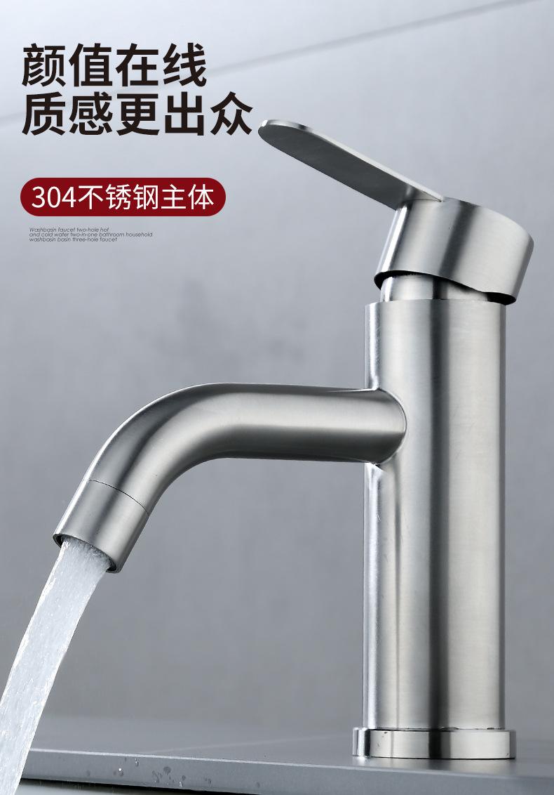 Grifo de lavabo de acero inoxidable 304, grifo de agua fría y caliente para baño, lavabo de encimera de un solo orificio, directo de fábrica