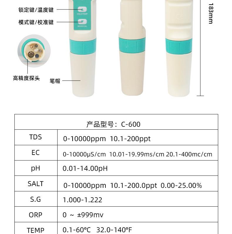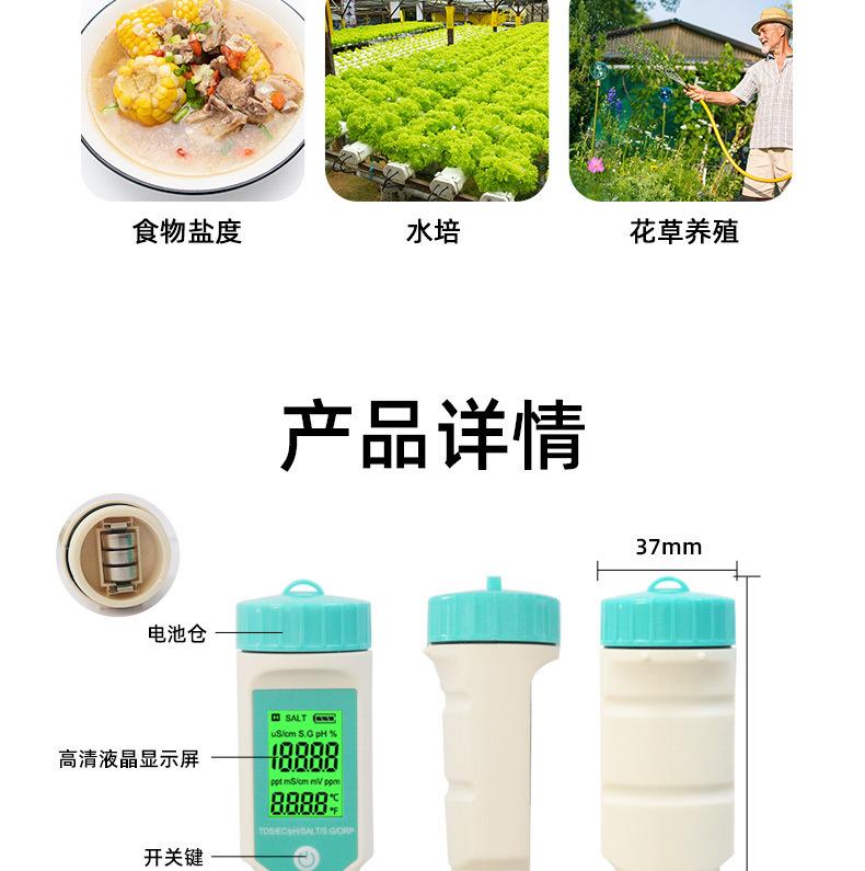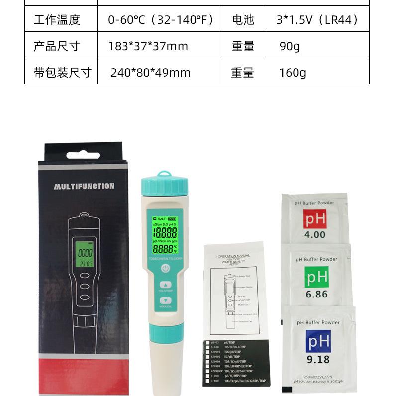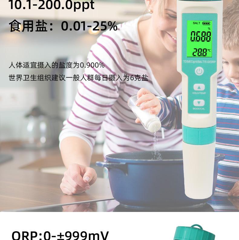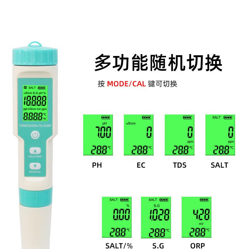 Pluma de prueba de calidad del agua siete en uno PH/TDS/EC/salinidad/SG/ORP/temperatura portátil multifunción pluma de prueba de ph pluma de prueba de calidad del agua tds pluma de prueba de calidad del agua multifunción pluma de prueba de agua medidor de ph pluma de ph medidor de acidez