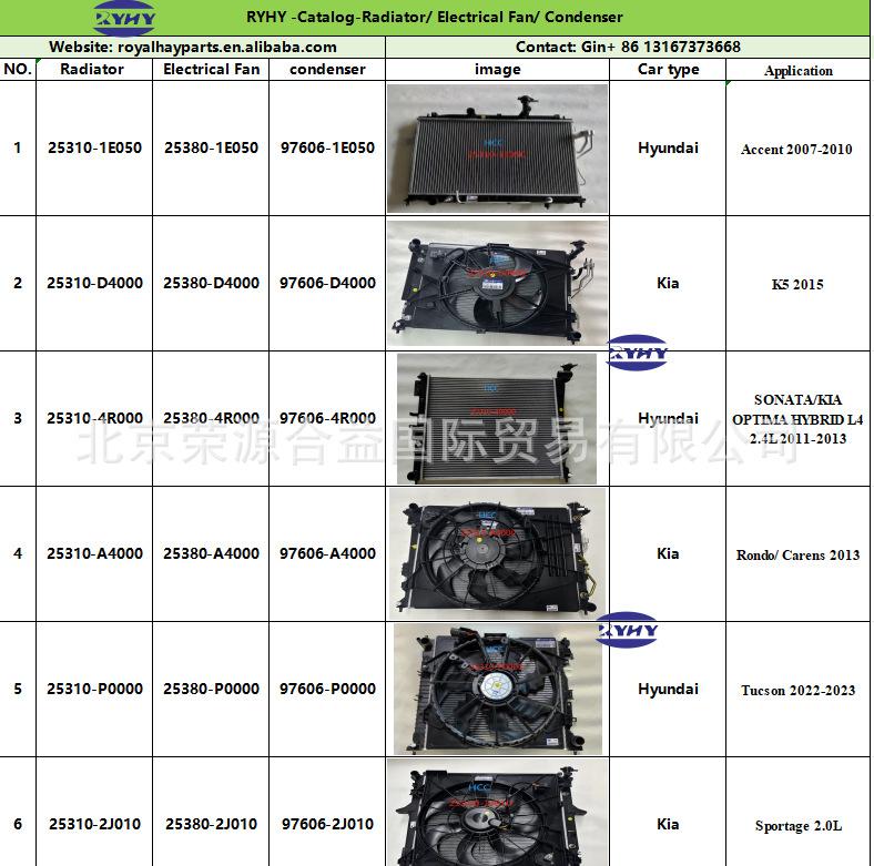 Conjunto de radiador 25310-1r050 25380-1r050 97606-1r050 apto para Hyundai Kia