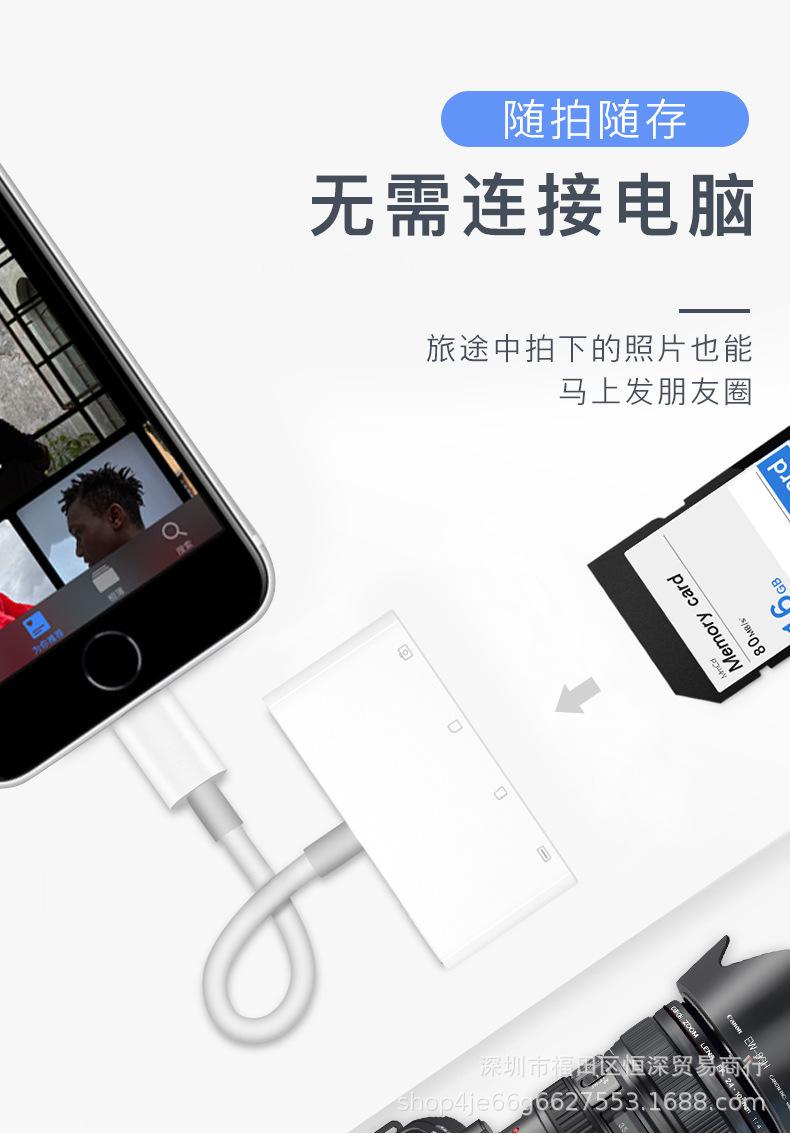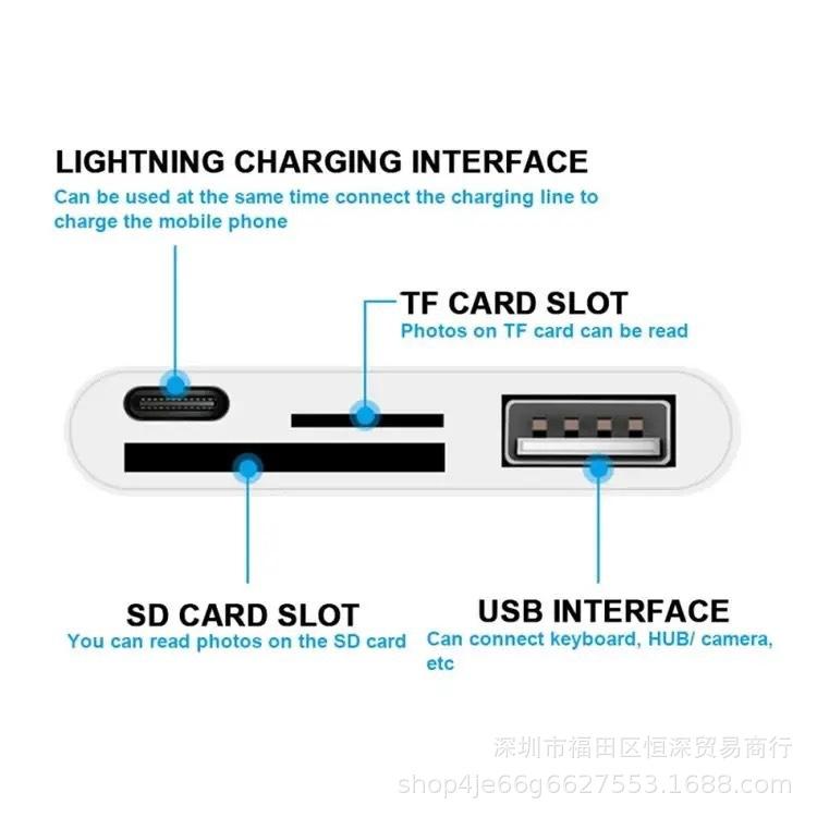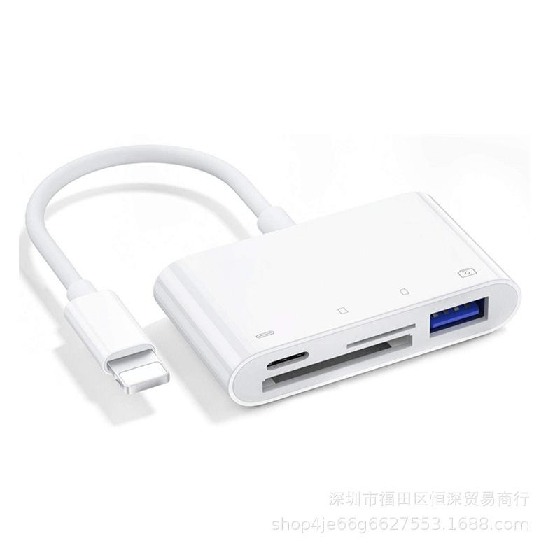 Cable adaptador Lightning a USB para lector de tarjetas Apple, kit convertidor de tarjeta SD OTG cuatro en uno.