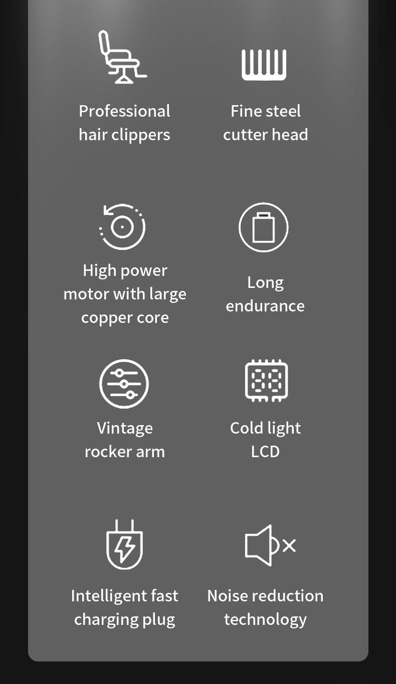 Venta caliente transfronteriza: cortadora de pelo profesional, cortadora eléctrica, LCD, cuchilla ajustable, distancia, cortadora de peluquero, afeitadora, cortadora eléctrica.