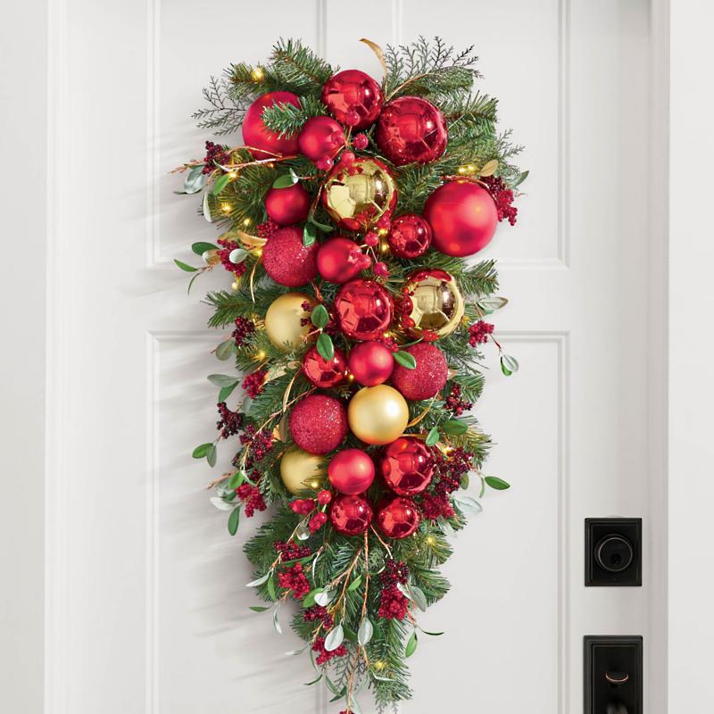 Paquete de diseño de escena colgante de puerta con bola navideña de ratán y cesta de corona navideña transfronteriza, venta al por mayor de Mori, árbol invertido