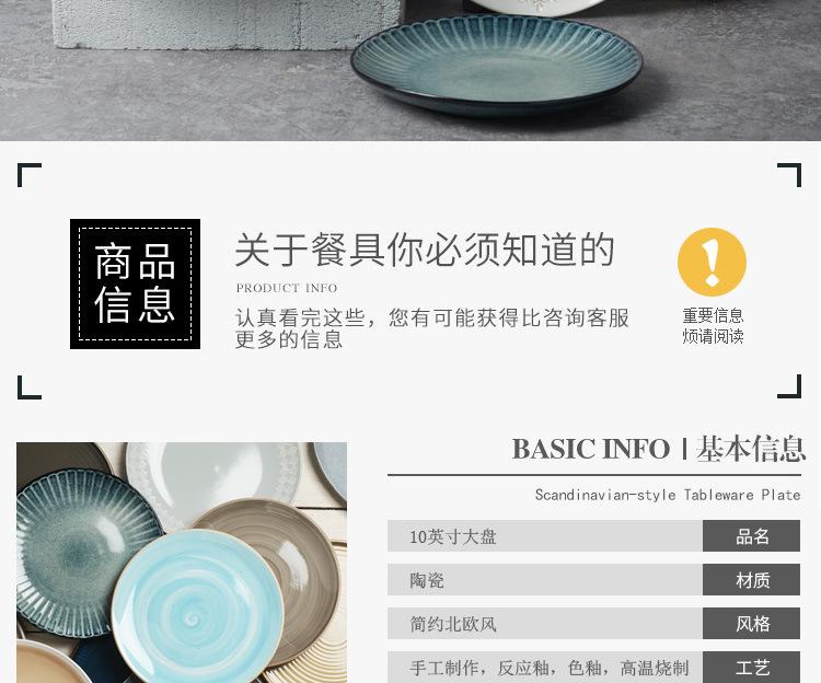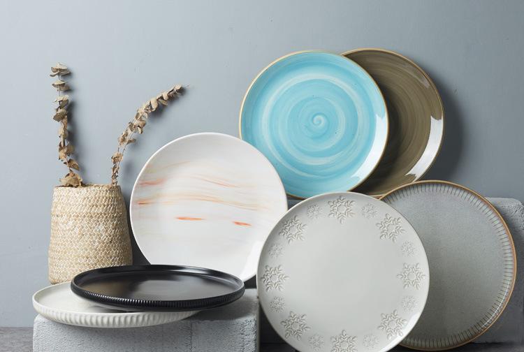 Plato de cerámica de 10 pulgadas, plato de comida occidental, plato de carne, vajilla para el hogar, plato grande nórdico para desayuno, plato de fruta Pasa