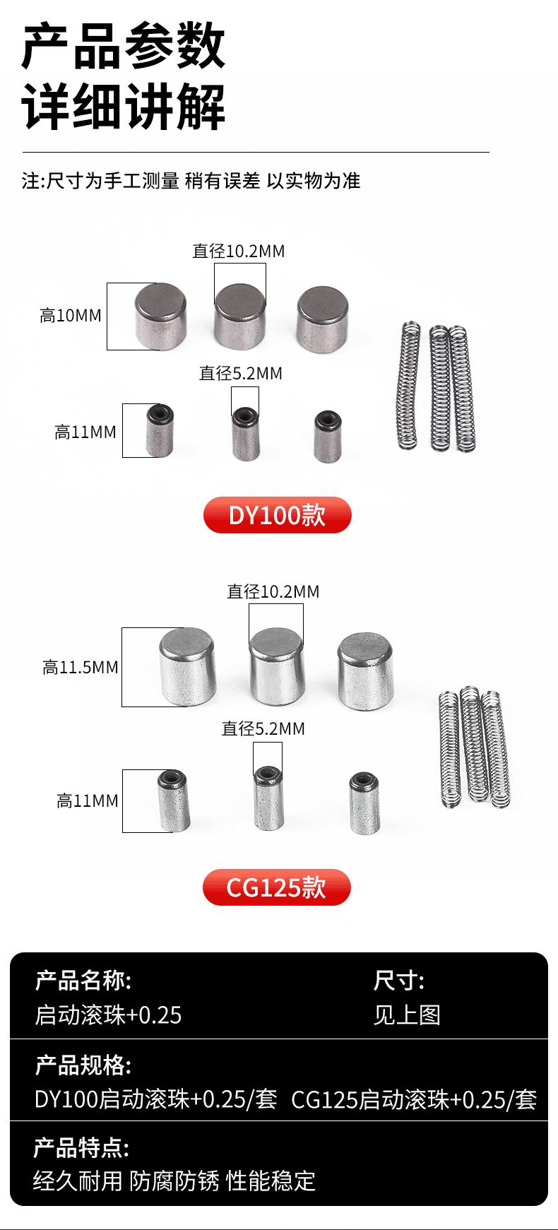 DY100 starting ball +0.25/1 set, CG125 starting ball +0.25/1 set
