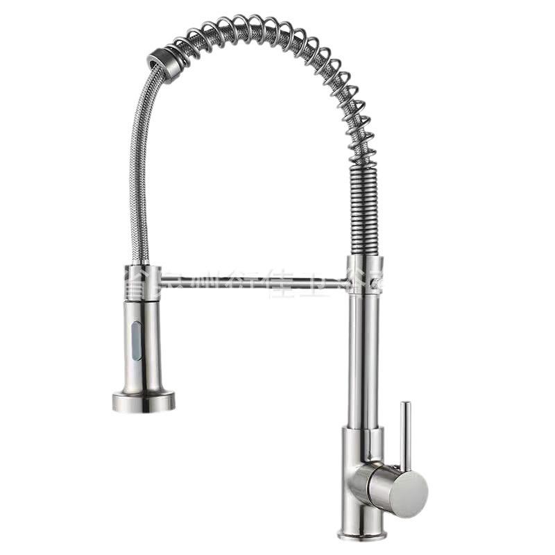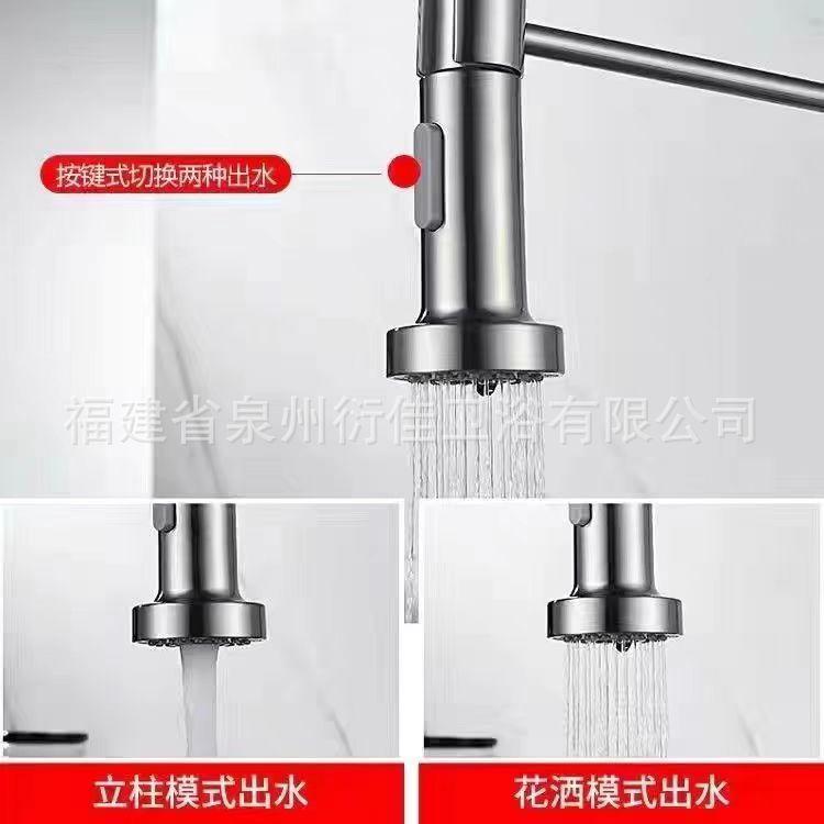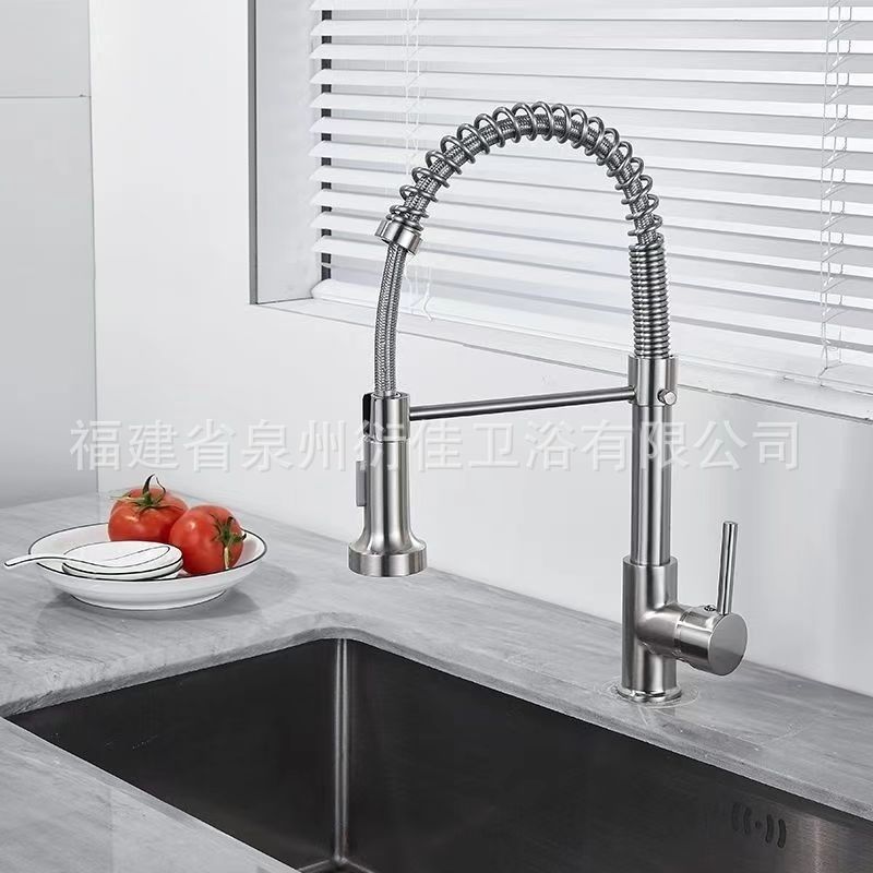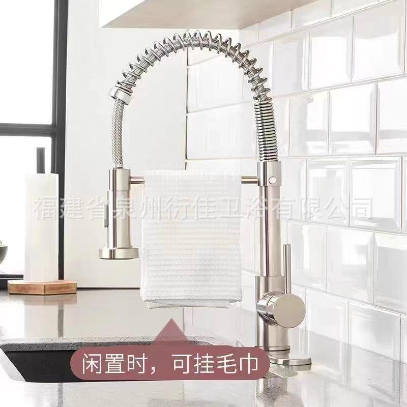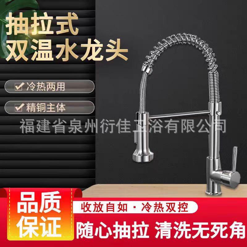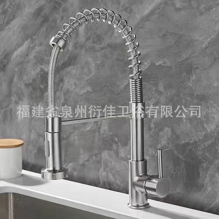 Grifo de cocina extraíble de resorte de acero inoxidable para agua fría y caliente, fregadero, fregadero, hogar, a prueba de salpicaduras, modo de doble salida, cabezal
