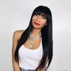 Long straight hair can be flat can be oblique bangs
