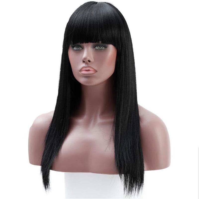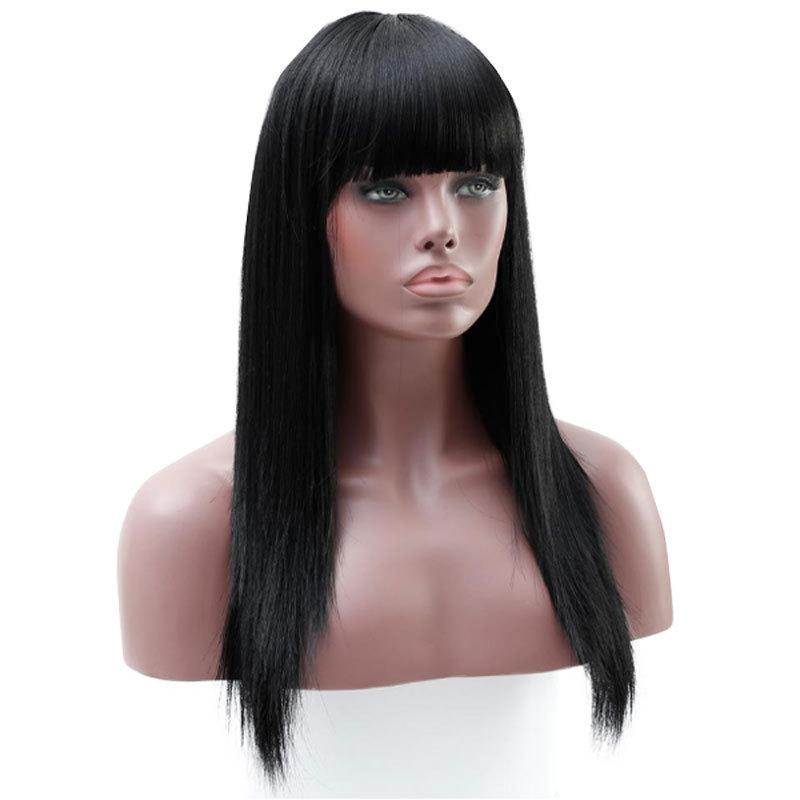 Peluca de fibra química de Amazon, nueva, europea y americana, para mujer, cabello largo y liso, color negro, de seda de alta temperatura, con fibra química.
