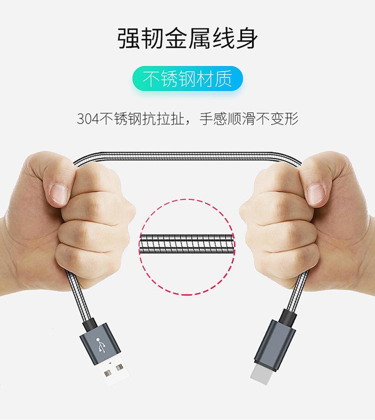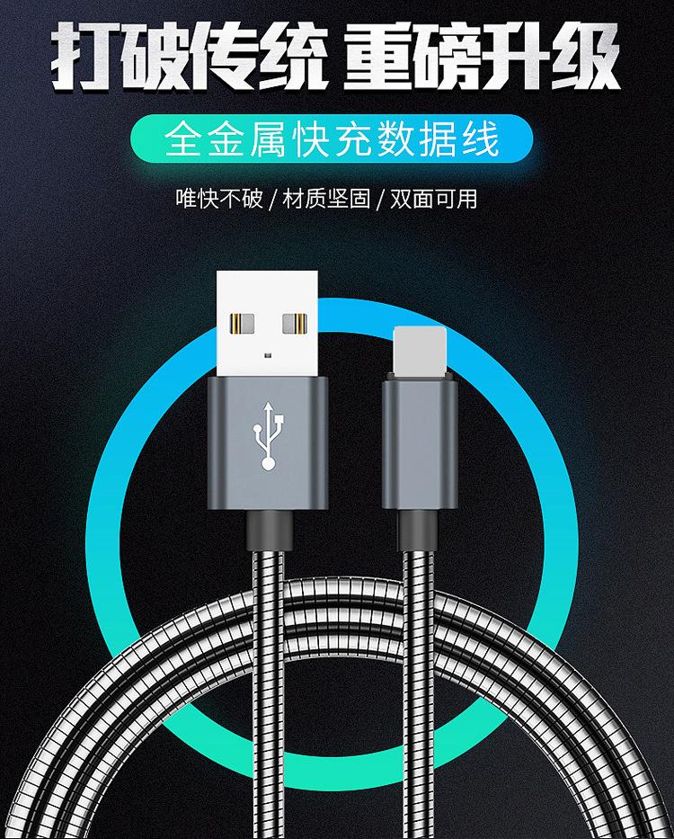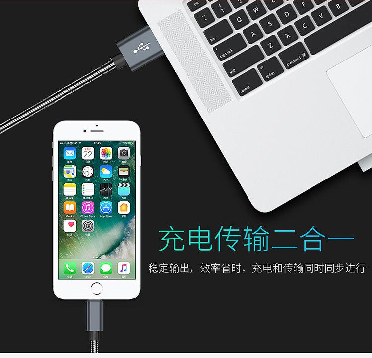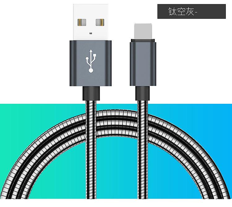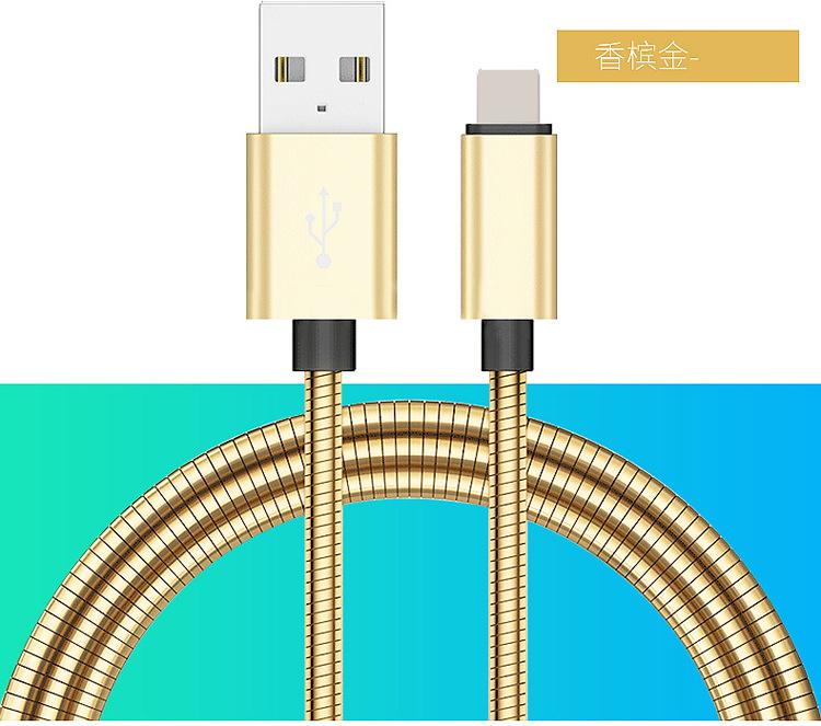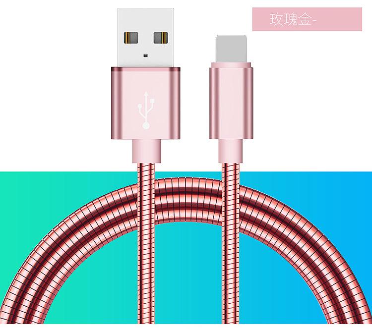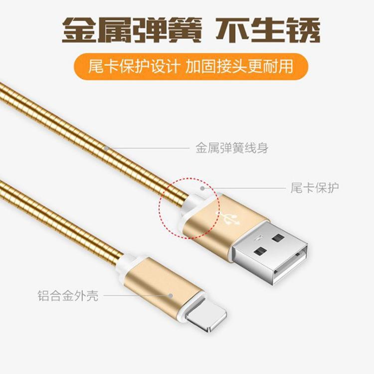 Cable de datos de carga rápida con resorte USB para iPhone de Apple, línea de carga de 2 A, tubo redondo de metal antienrollamiento