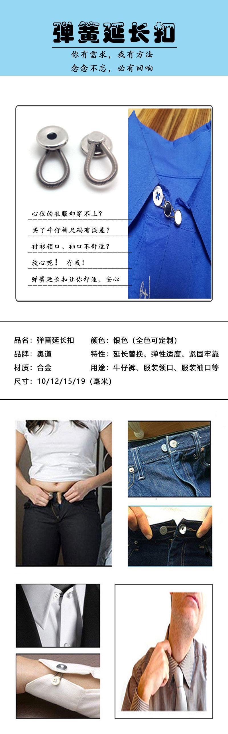 Hebilla de resorte de metal de 10 mm con borde cruzado, botón de extensión de manga de camisa elástica, hebilla de extensión elástica de contracción para todo tipo de camisas.