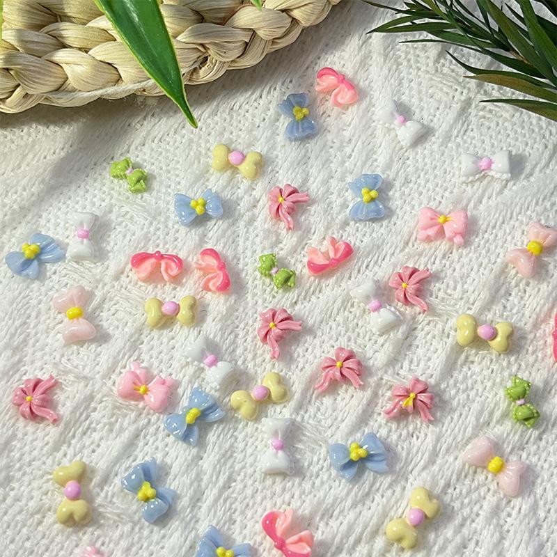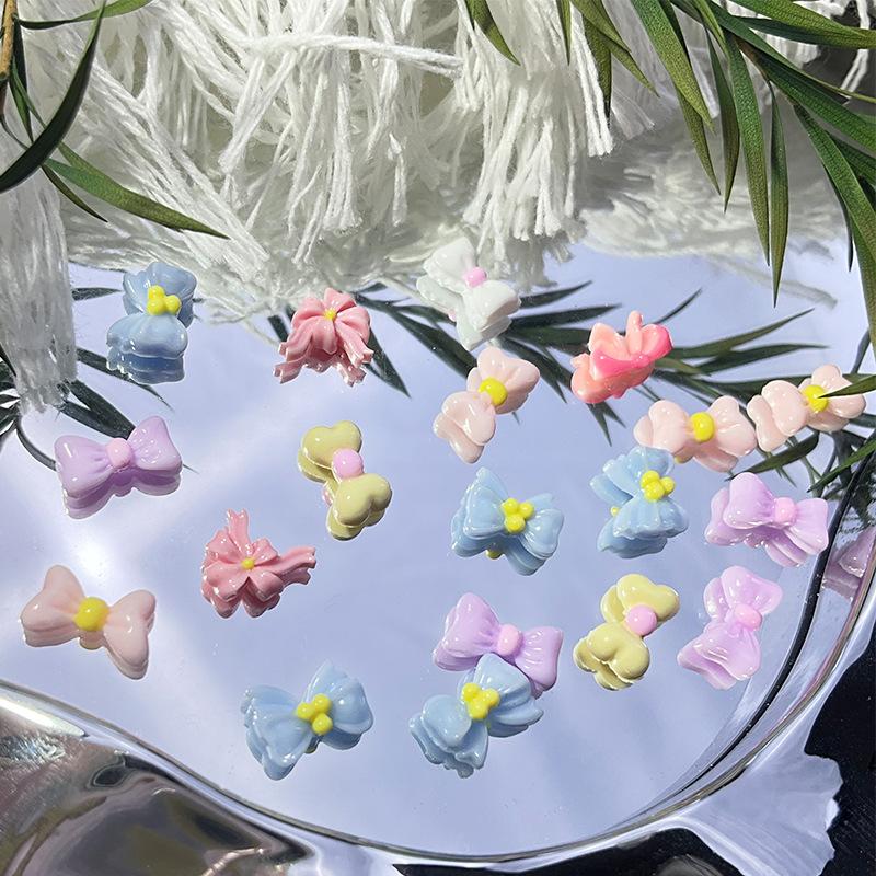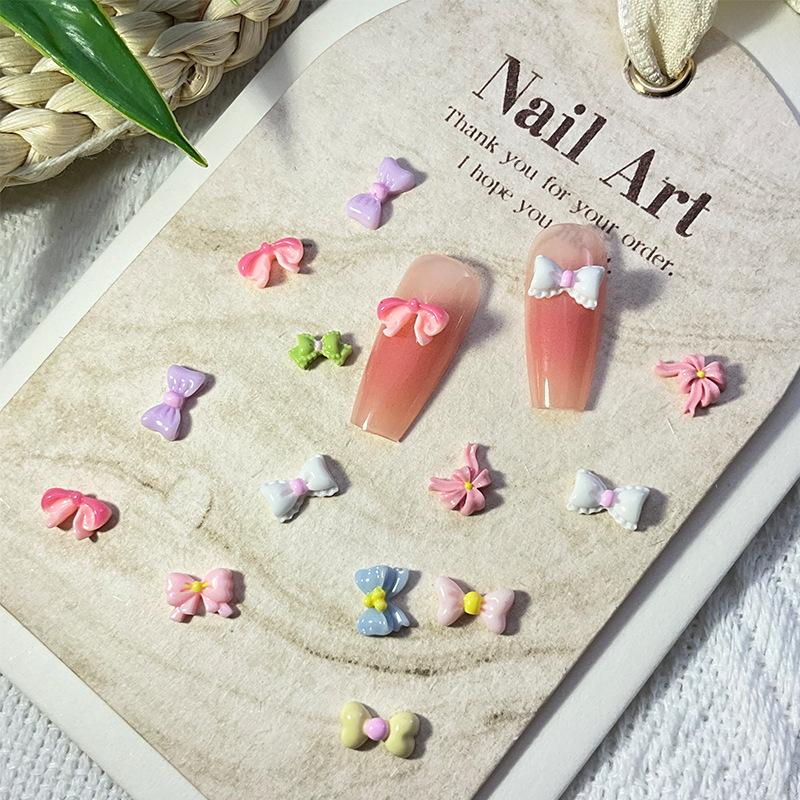 Nuevo Arte de Uñas Patrón Irregular Lazo Joyería Mixto Color Tridimensional Lazo Dopamina Arte de Uñas Joyería